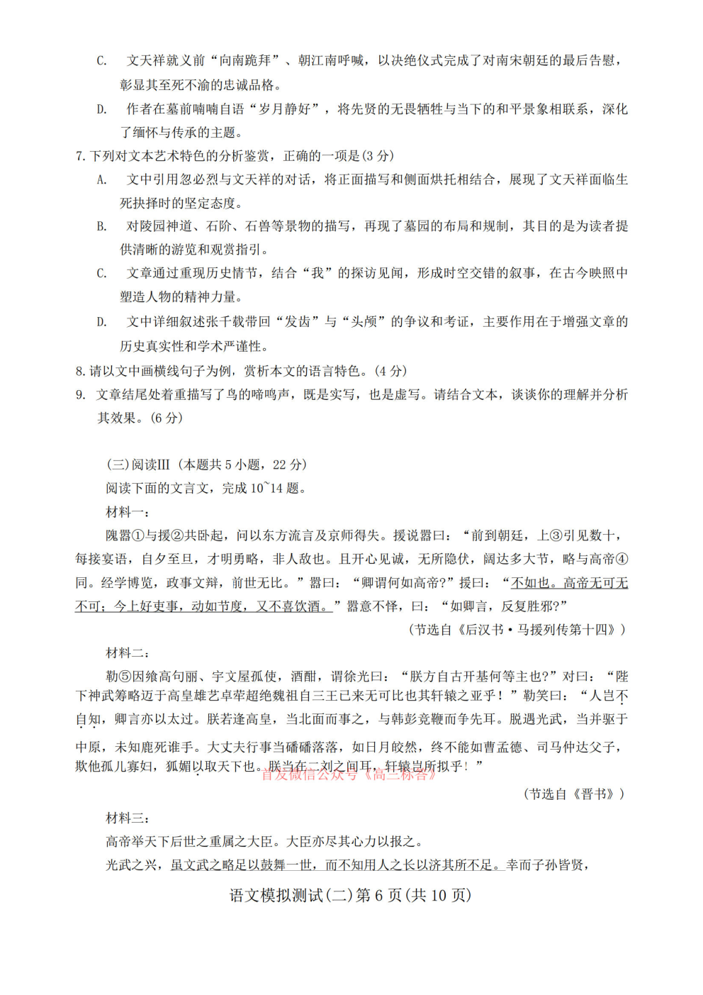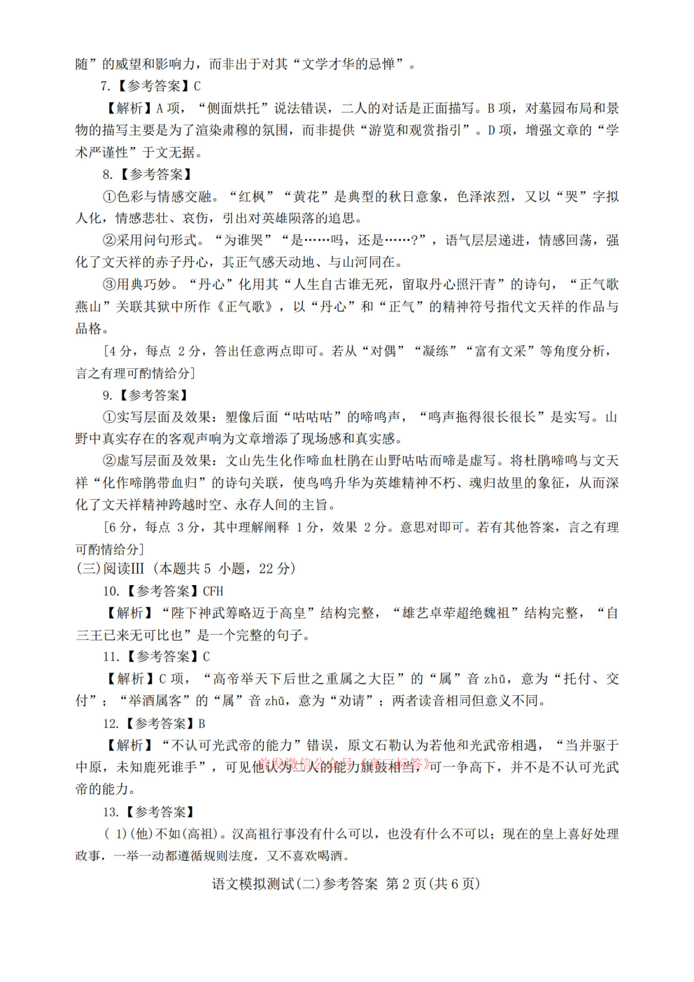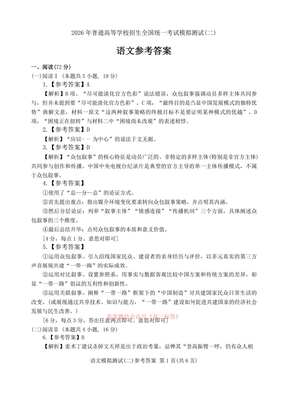 【大湾区二模】2026届高三模拟测试二答案 【大湾区二模】2026届高三模拟测试二答案