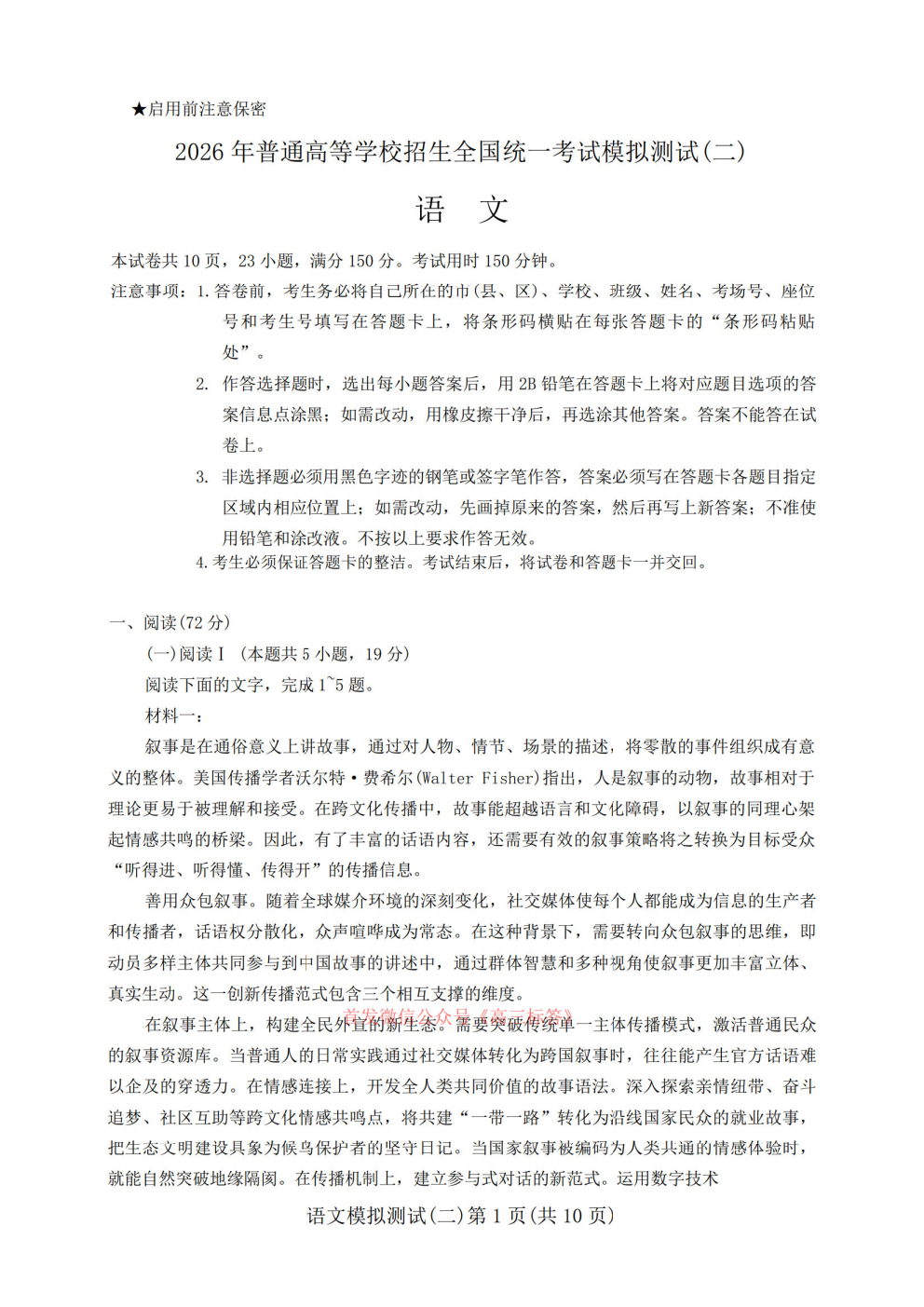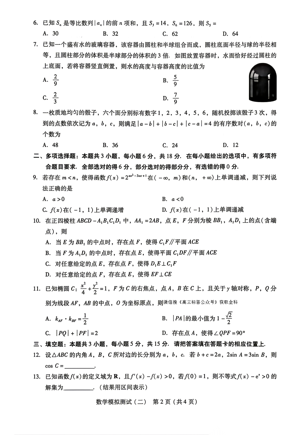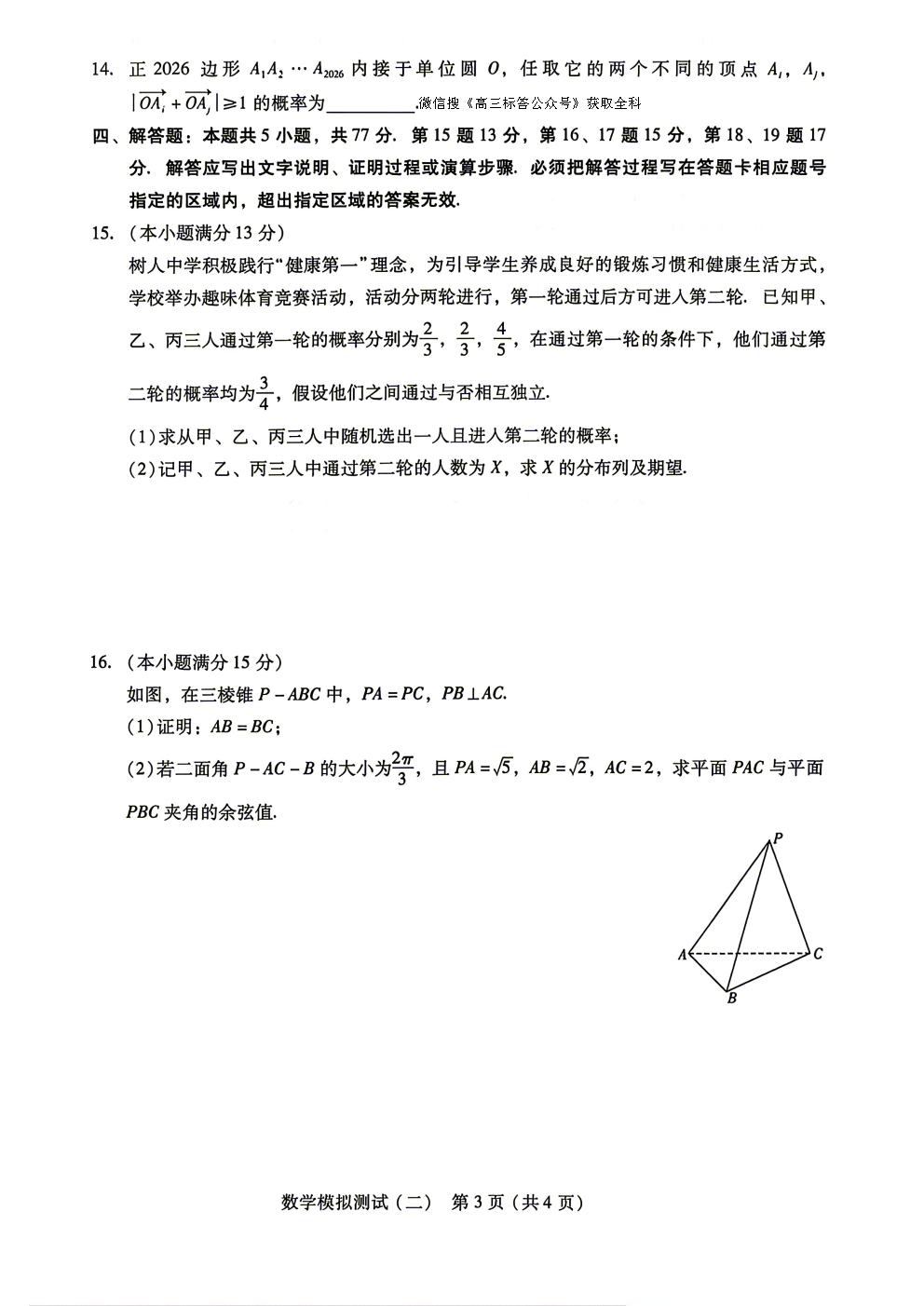 【大湾区二模】2026届高三模拟测试二答案 【大湾区二模】2026届高三模拟测试二答案