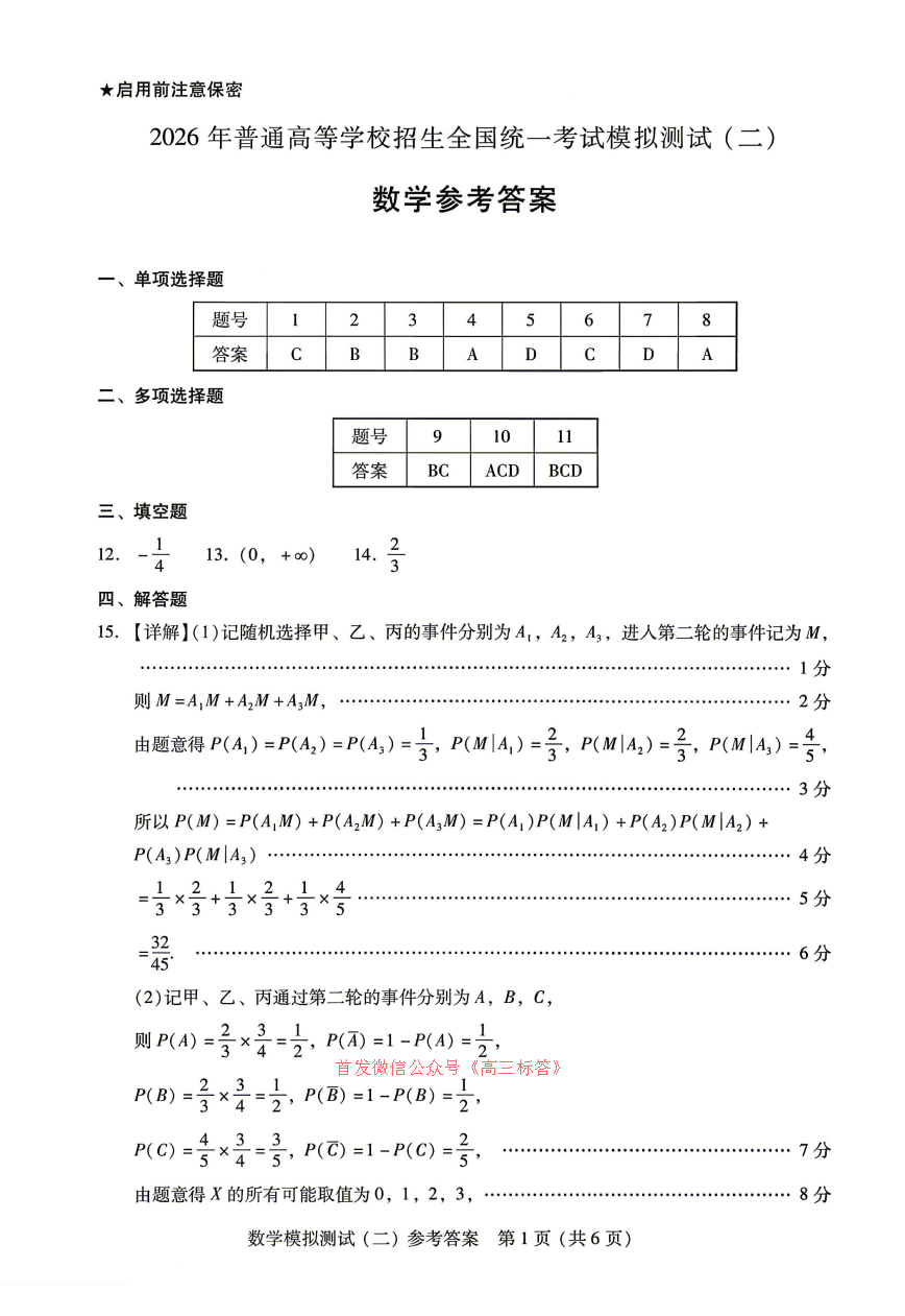 【张家口二模】张家口市2026届高三年级第二次模拟考试答案 【张家口二模】张家口市2026届高三年级第二次模拟考试答案