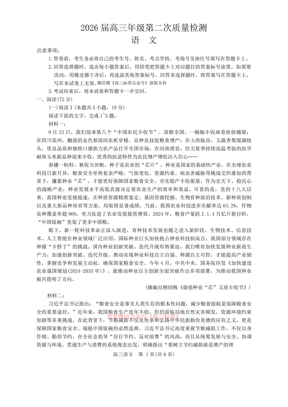 【九师联盟】江西重点中学2026届高三年级四月测试全科下载 【九师联盟】江西重点中学2026届高三年级四月测试全科下载