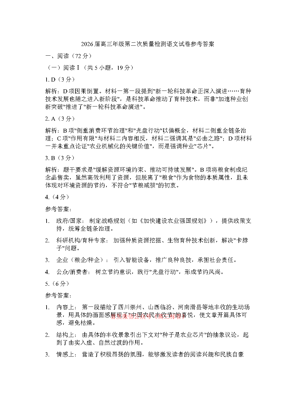 2026年4月暨阳联谊学校高三联考答案 2026年4月暨阳联谊学校高三联考答案