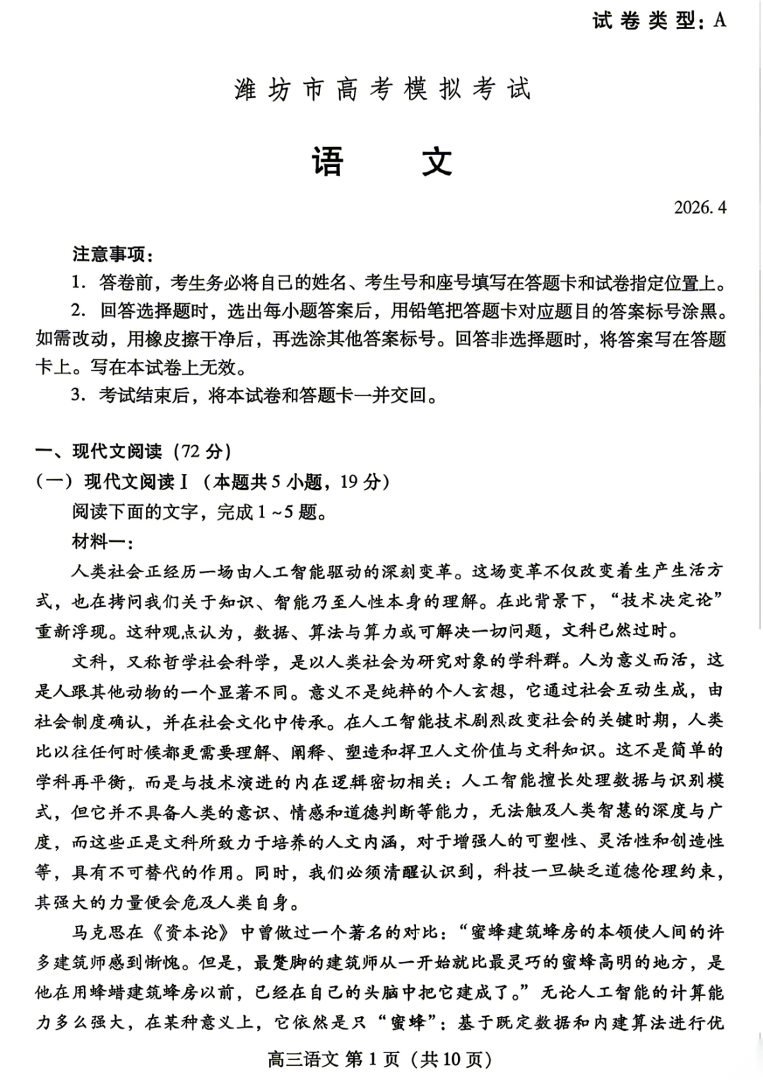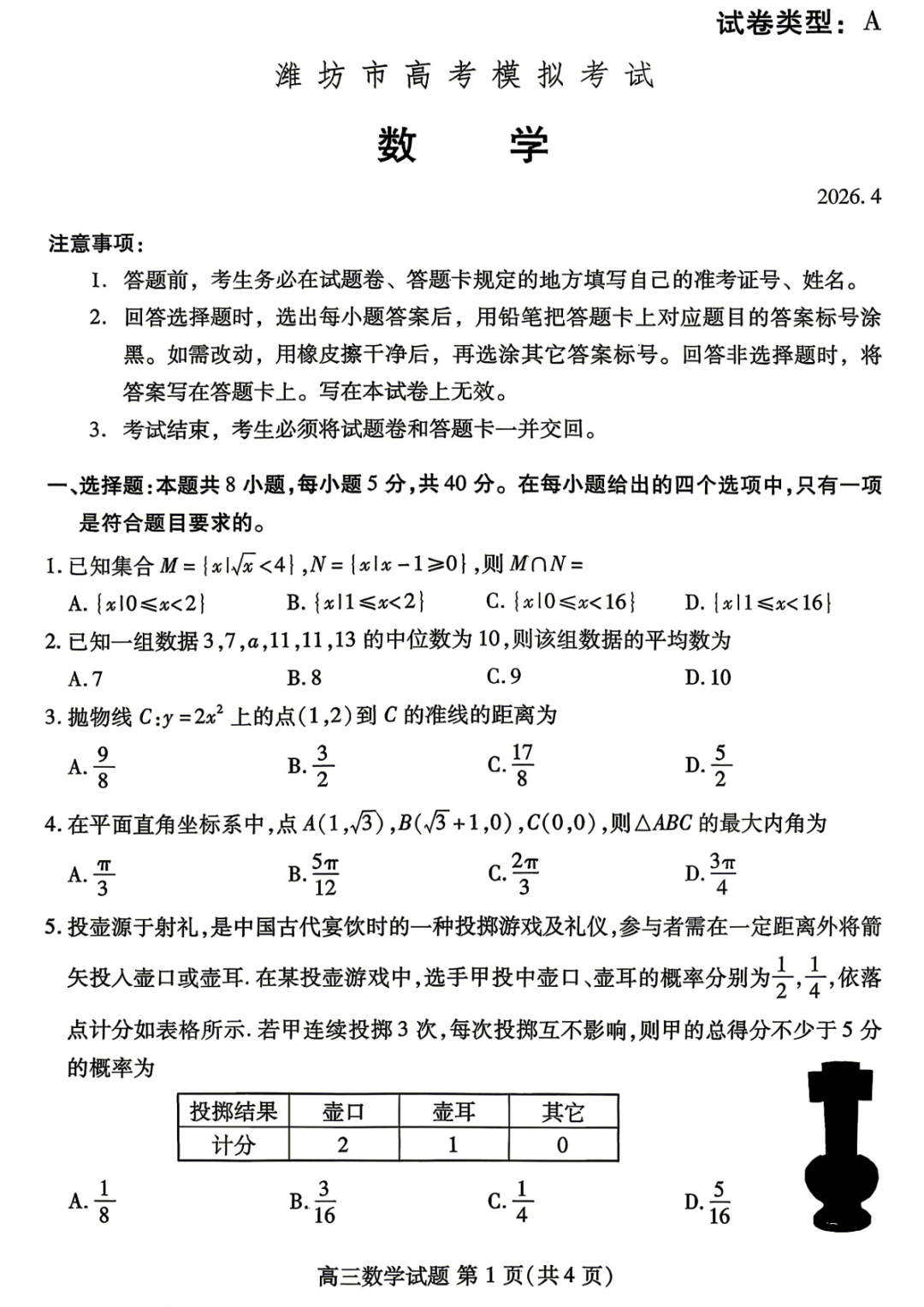 【潍坊二模】山东省潍坊市2026届高考模拟考试试题