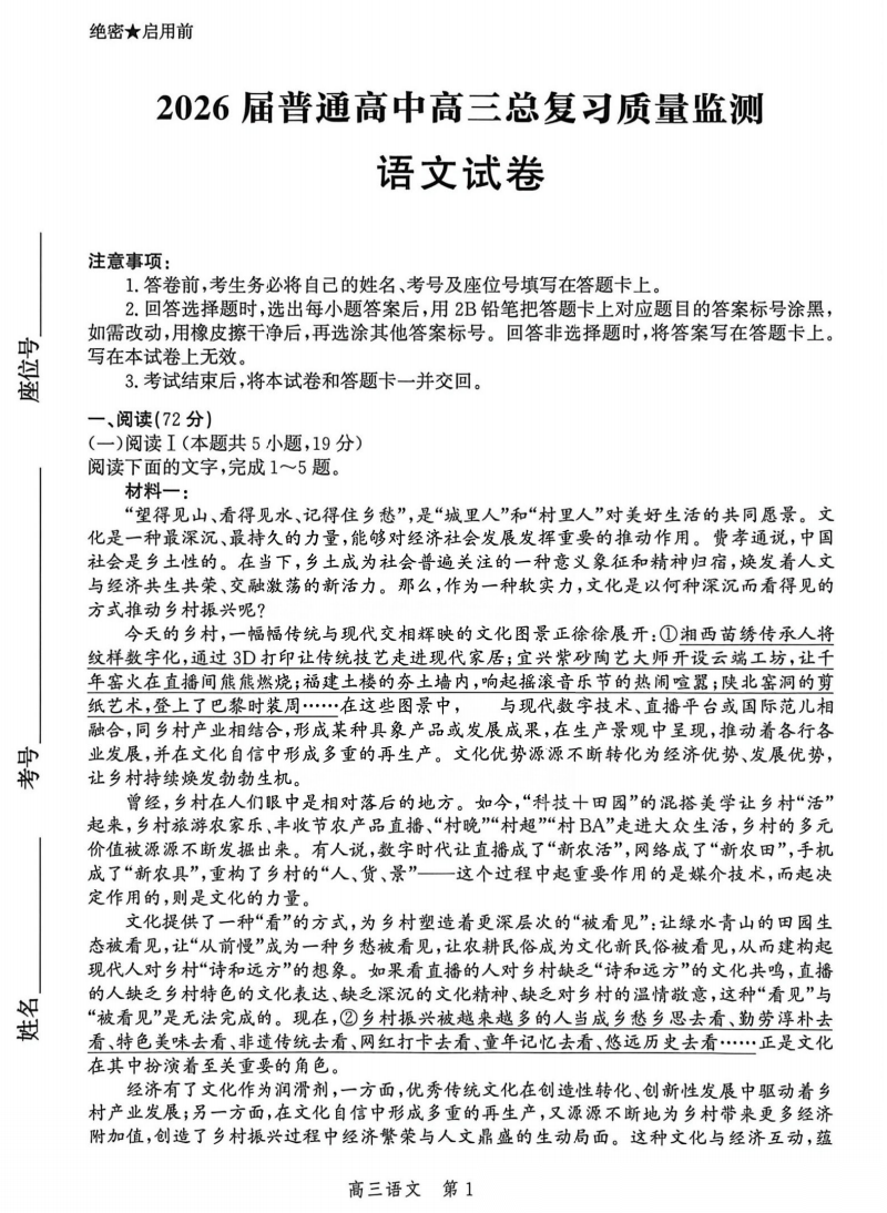 【拉萨二模全科】西藏自治区拉萨市2026届高三第二次联考 【拉萨二模全科】西藏自治区拉萨市2026届高三第二次联考