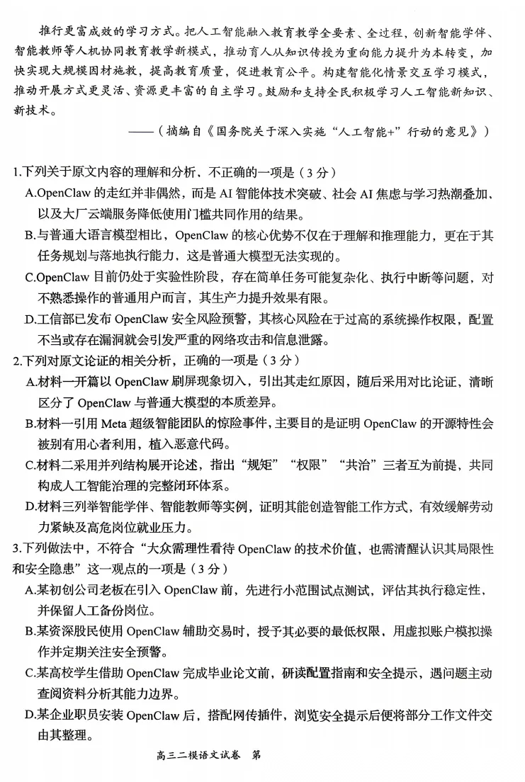 【河北卷】河北省沧州市2026届普通高中高三年级总复习质量监测(沧州高三二模)(4.20-4.22) 数学物理语文历史试题卷+答案 【河北卷】河北省沧州市2026届普通高中高三年级总复习质量监测(沧州高三二模)(4.20-4.22) 数学物理语文历...