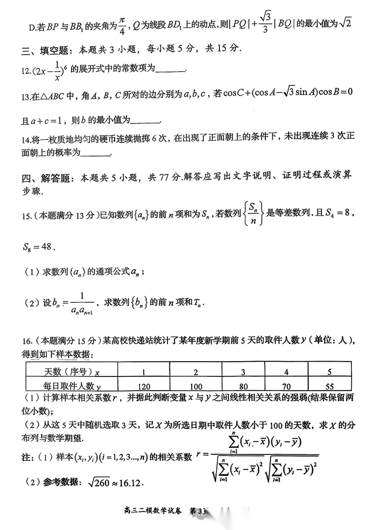 2026年4月四川绵阳高三三诊适应性练习试题【绵阳三诊】 2026年4月四川绵阳高三三诊适应性练习试题【绵阳三诊】