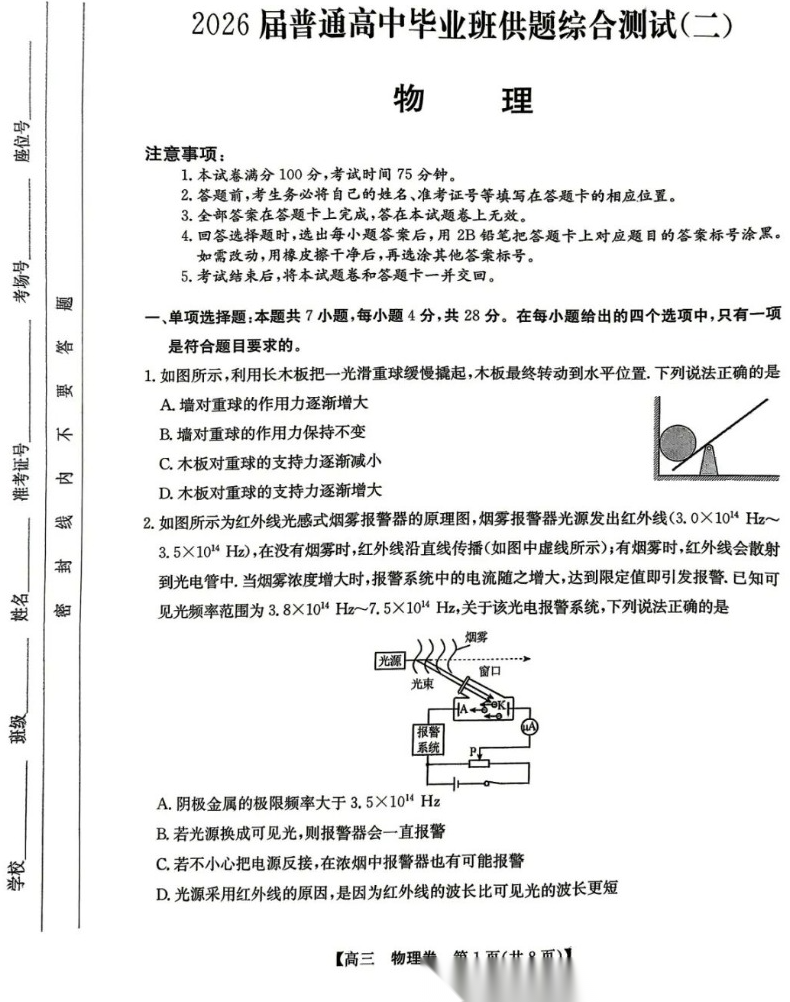【广东卷】广东省清远市2026届普通高中毕业班高三年级供题综合测试(二)(清远二模)(4.20-4.22) 数学物理英语语文历史试题卷+答案