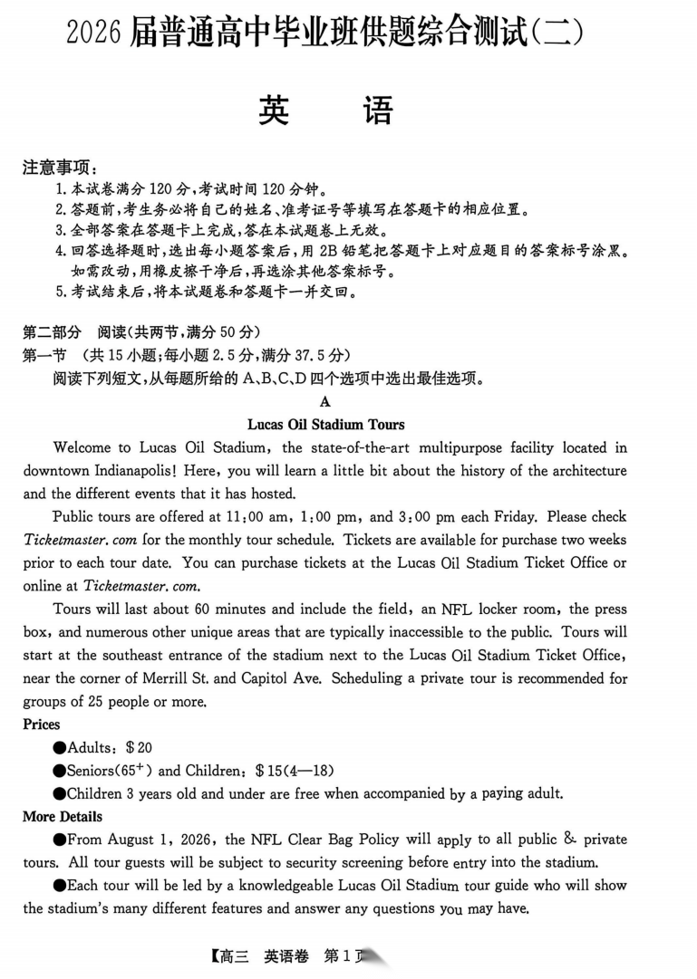 【河南卷】河南省开封市2026届高三年级下学期第二次质量检测(开封二模)(4.21-4.22) 数学物理化学语文历史试题卷+答案 【河南卷】河南省开封市2026届高三年级下学期第二次质量检测(开封二模)(4.21-4.22) 数学物理化...