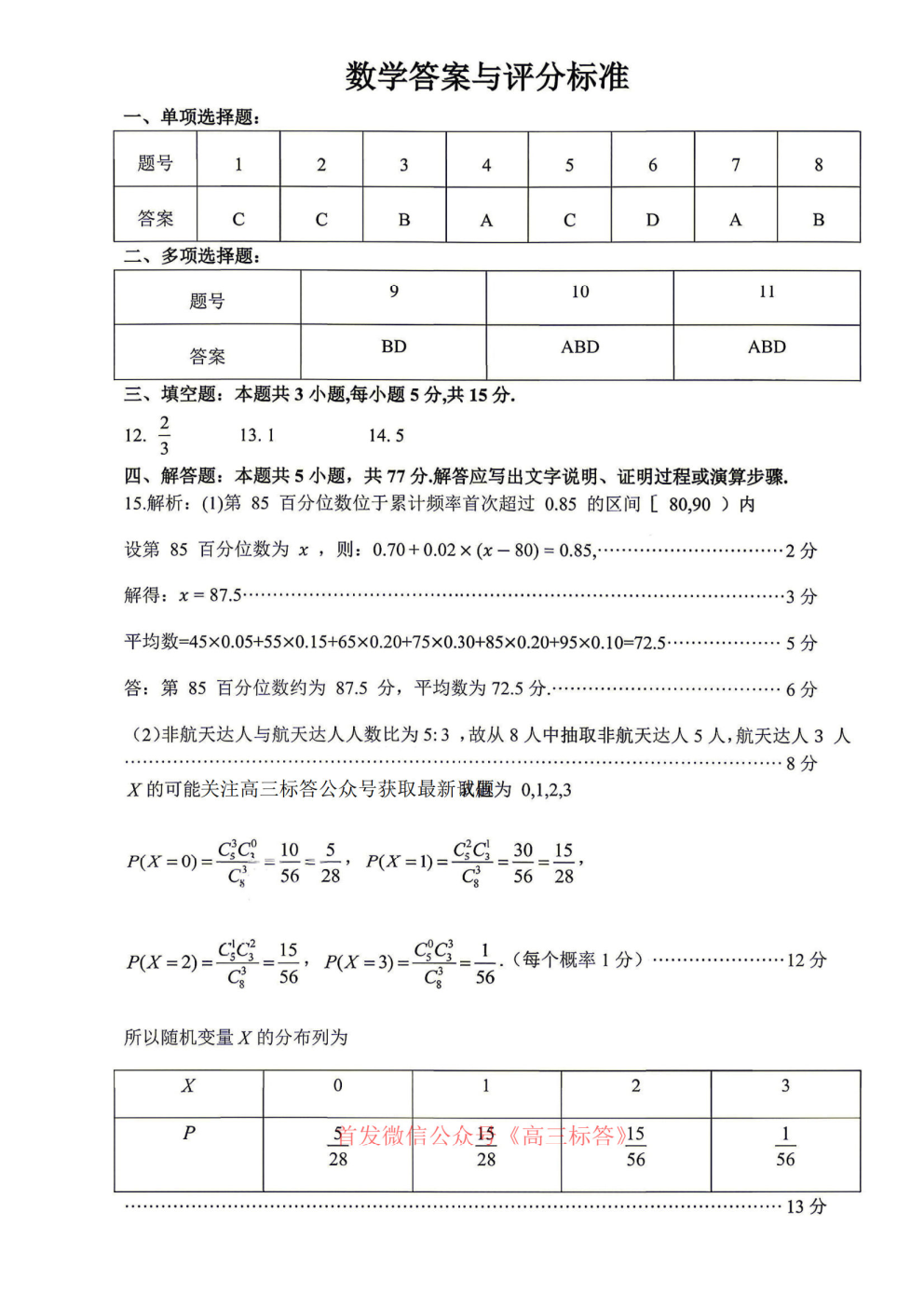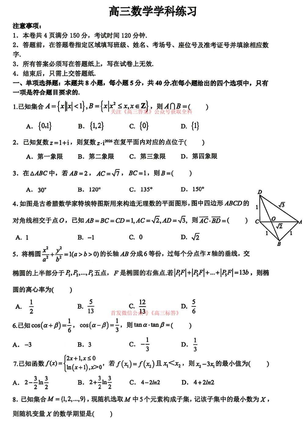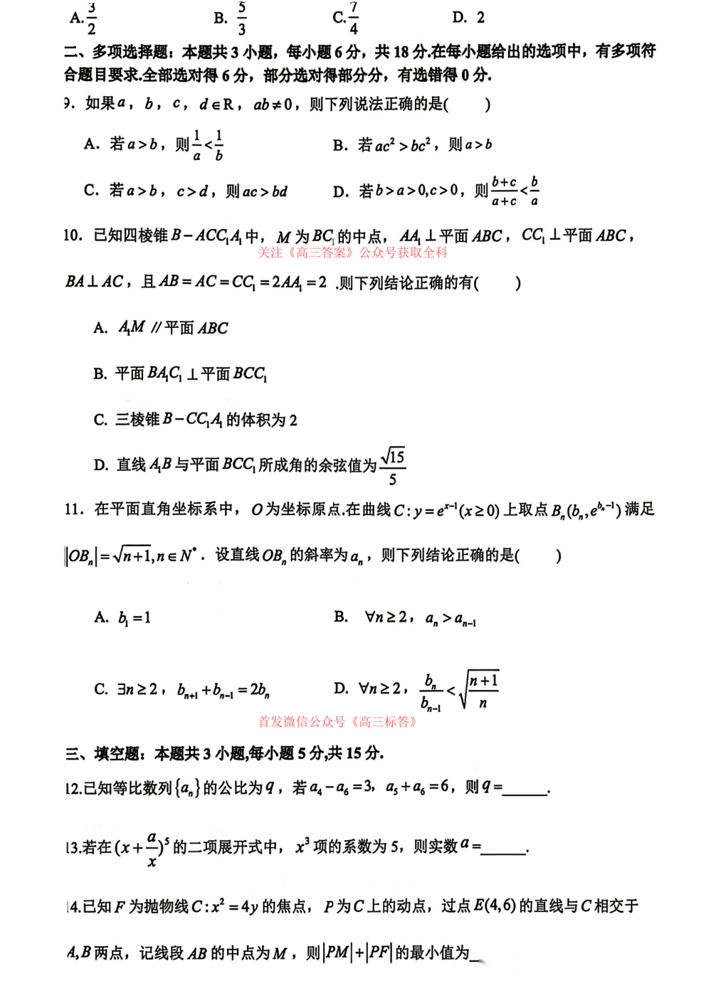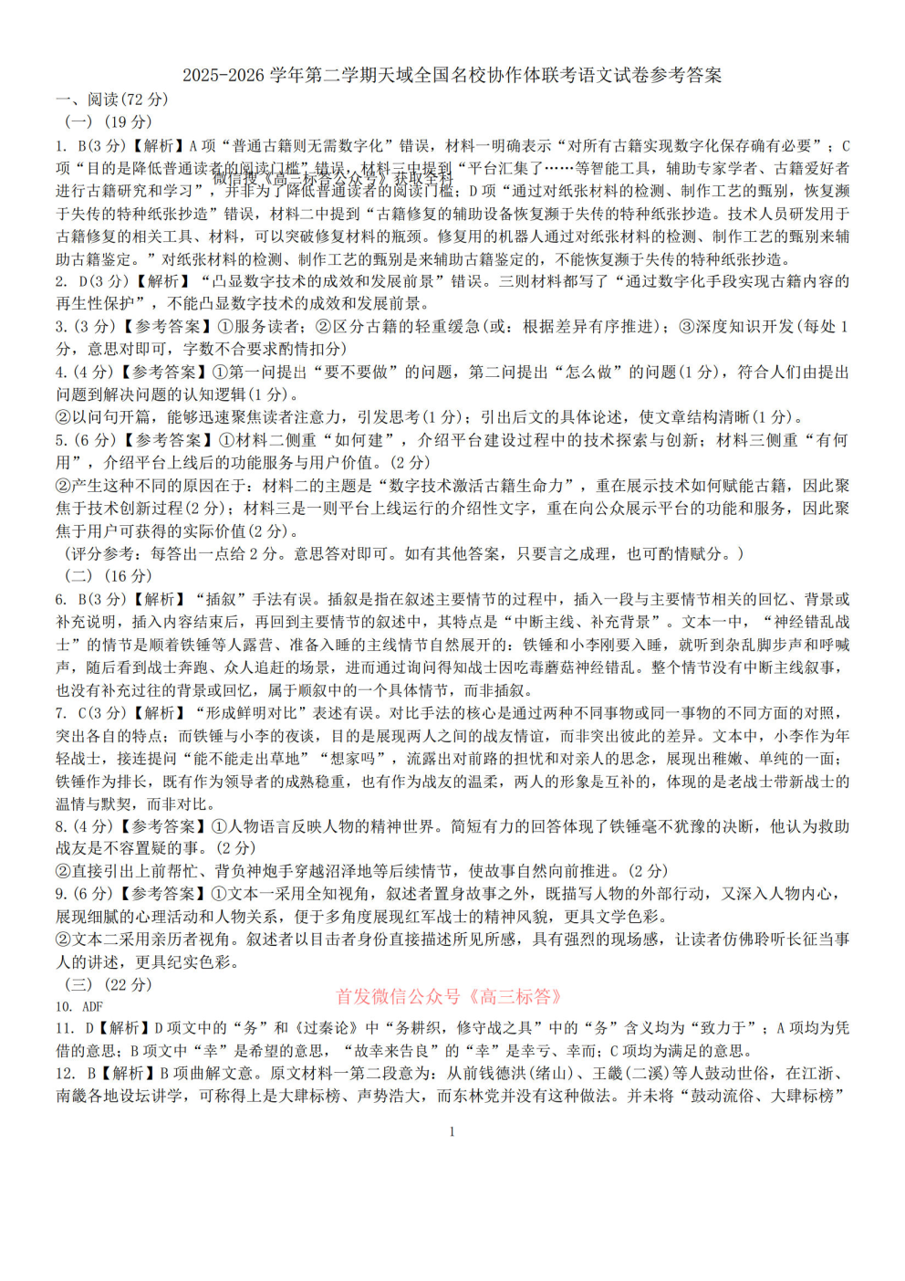 2026天域全国名校协作体高三4月联考答案
