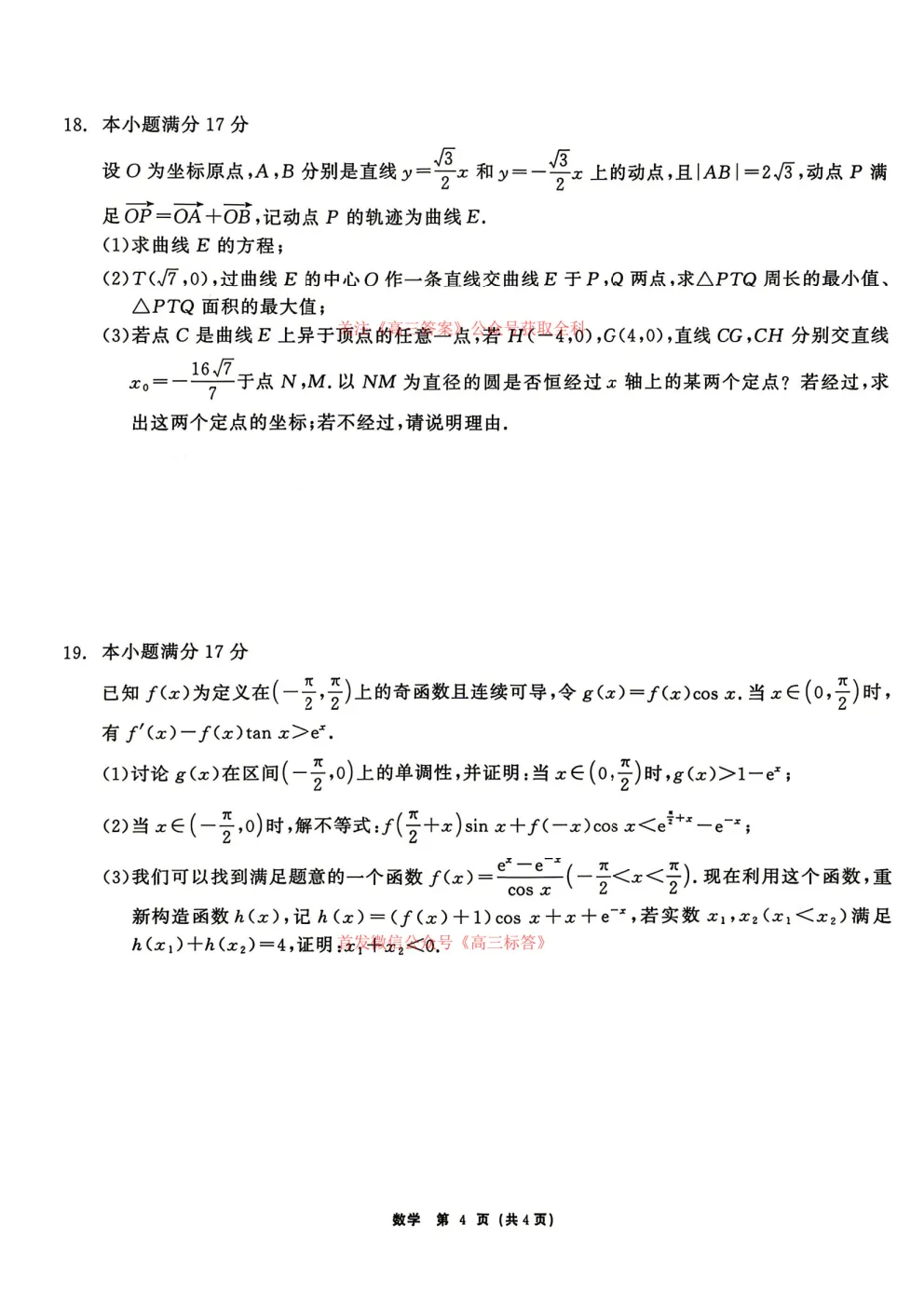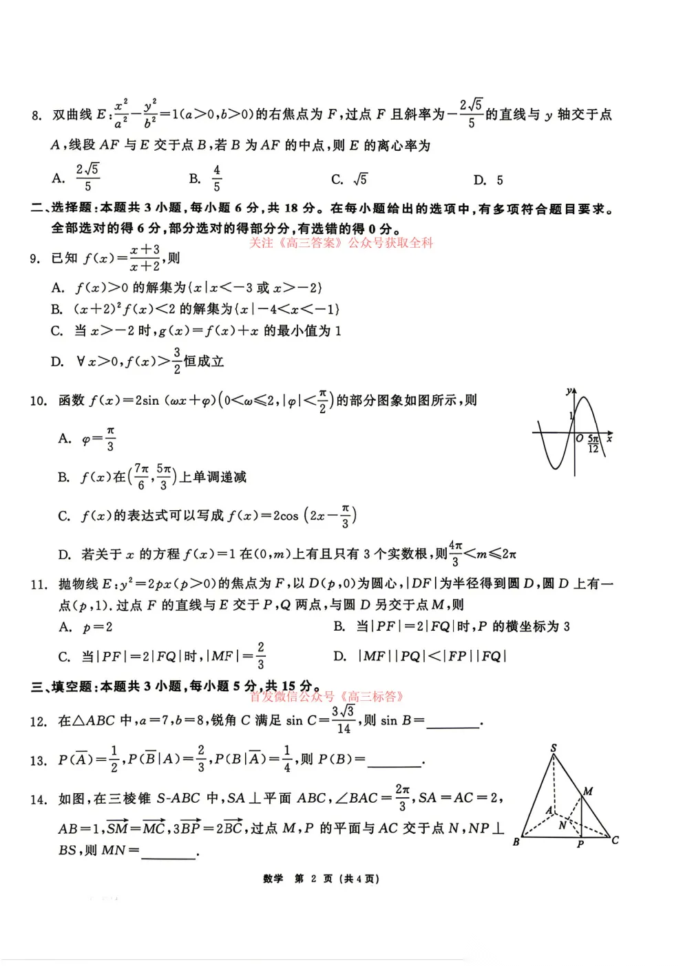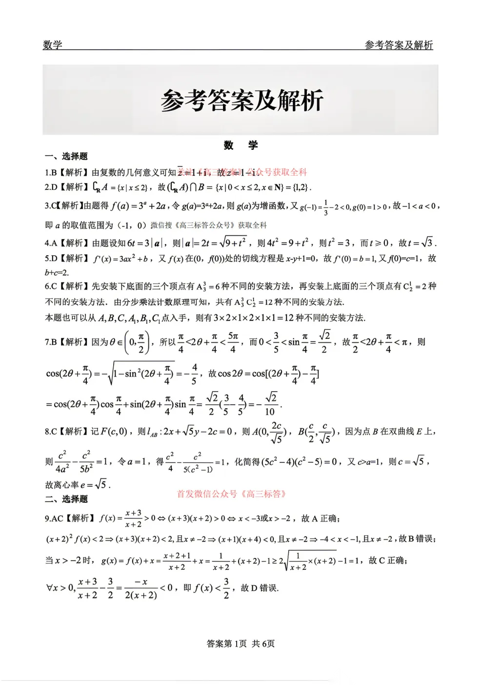 2026天域全国名校协作体高三4月联考答案 2026天域全国名校协作体高三4月联考答案
