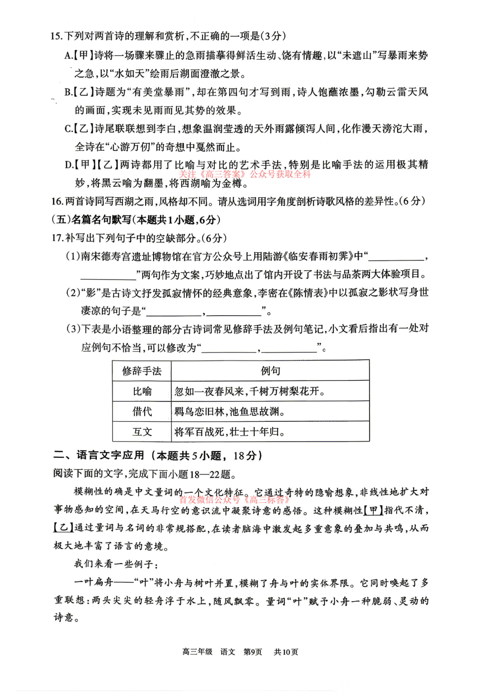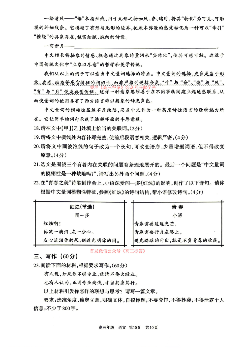 2026天域全国名校协作体高三4月联考答案 2026天域全国名校协作体高三4月联考答案