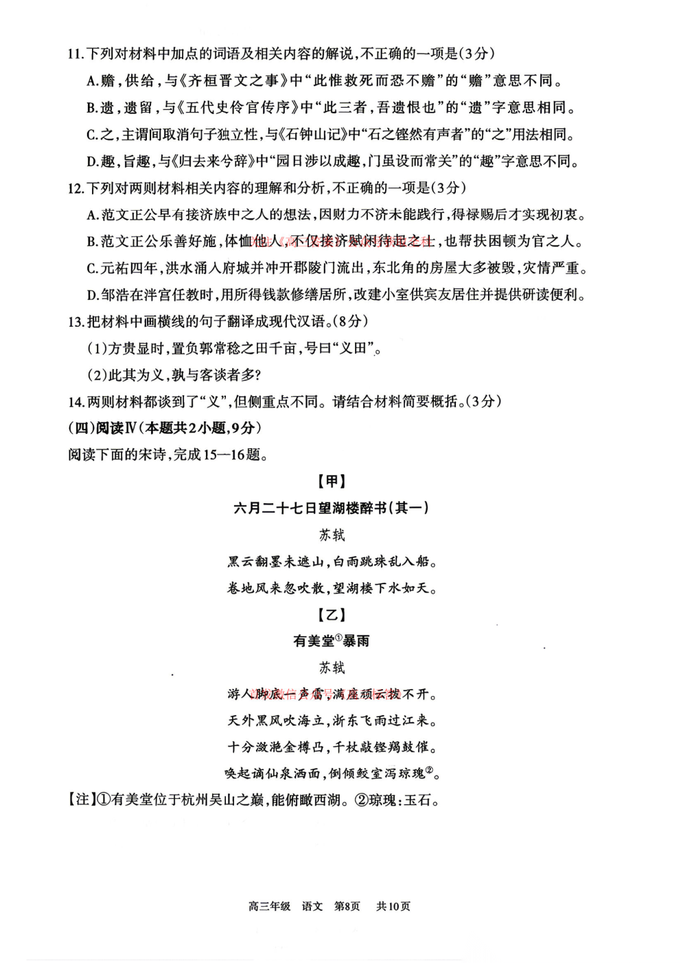 新疆、湖南G20联盟2026届高三核心素养测评答案 新疆、湖南G20联盟2026届高三核心素养测评答案