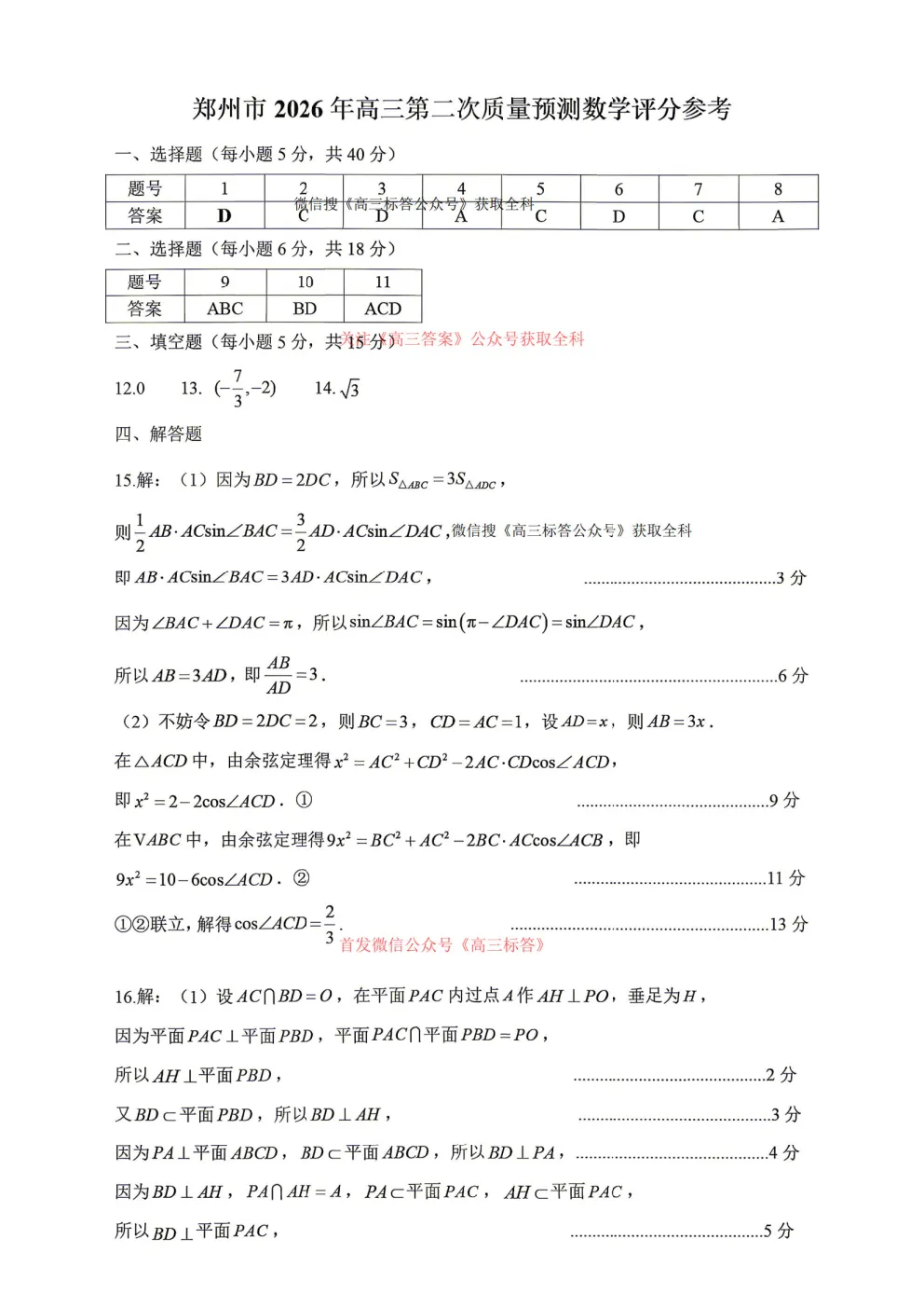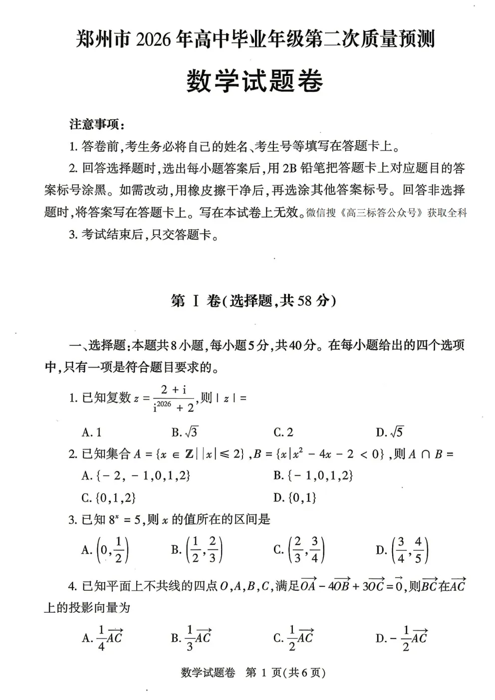 【郑州二模】郑州市2026年高中毕业年级第二次质量预测全科下载