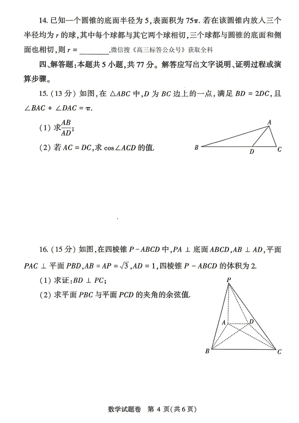 2026天域全国名校协作体高三4月联考答案 2026天域全国名校协作体高三4月联考答案