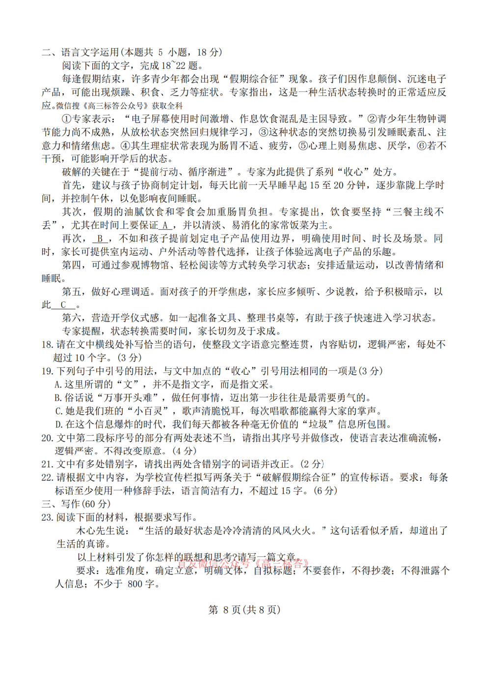 新疆、湖南G20联盟2026届高三核心素养测评答案 新疆、湖南G20联盟2026届高三核心素养测评答案