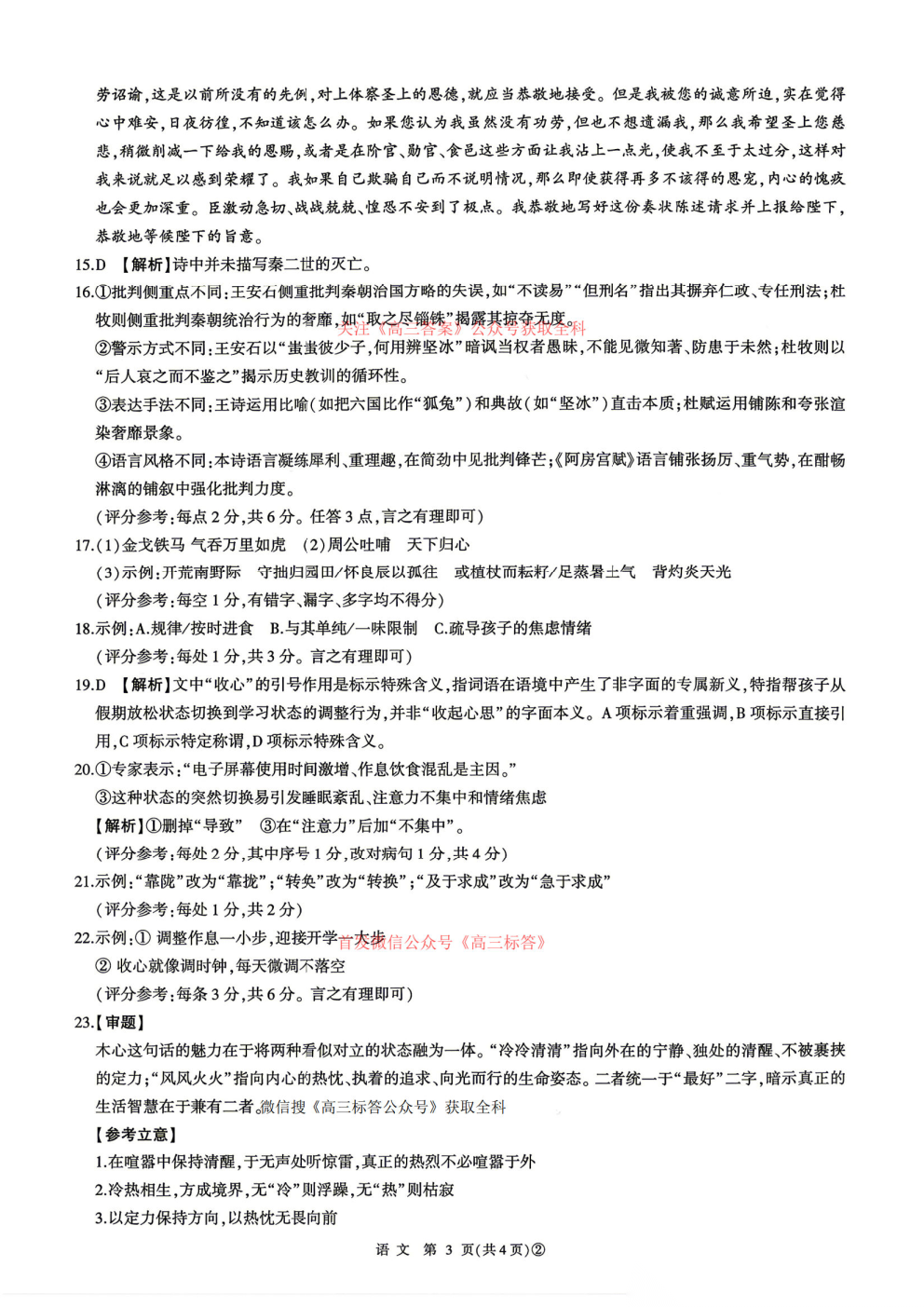 2026百师联盟高三4月22适应性模拟考试答案