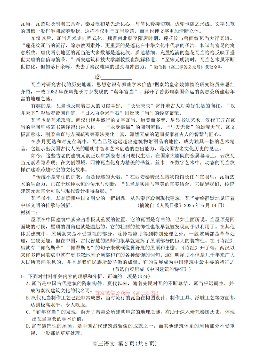 【呼和浩特市二模】2026年高三年级第二次模拟考试答案 【呼和浩特市二模】2026年高三年级第二次模拟考试答案