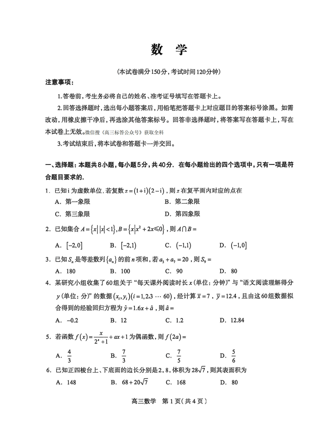 新疆、湖南G20联盟2026届高三核心素养测评答案 新疆、湖南G20联盟2026届高三核心素养测评答案