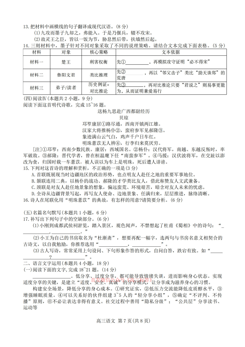 2026百师联盟高三4月22适应性模拟考试答案 2026百师联盟高三4月22适应性模拟考试答案