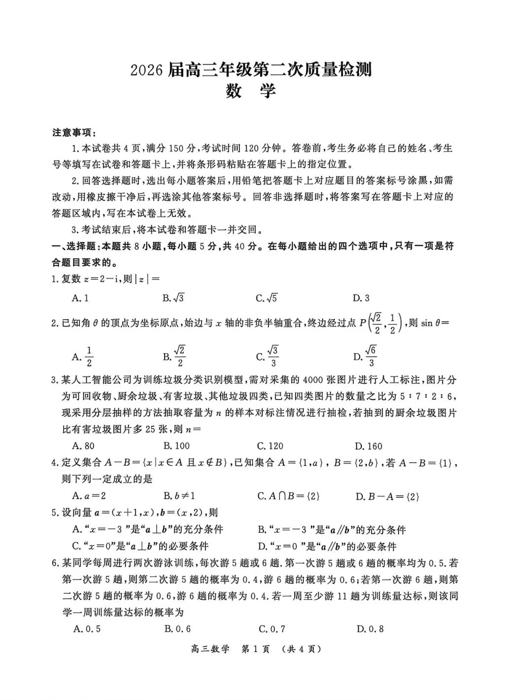 【达州二诊全科】达州市普通高中2026届高三第二次诊断测试 【达州二诊全科】达州市普通高中2026届高三第二次诊断测试
