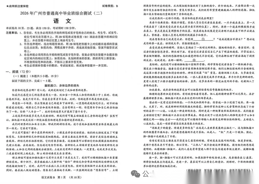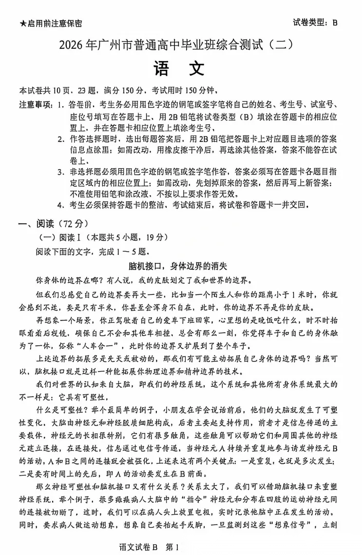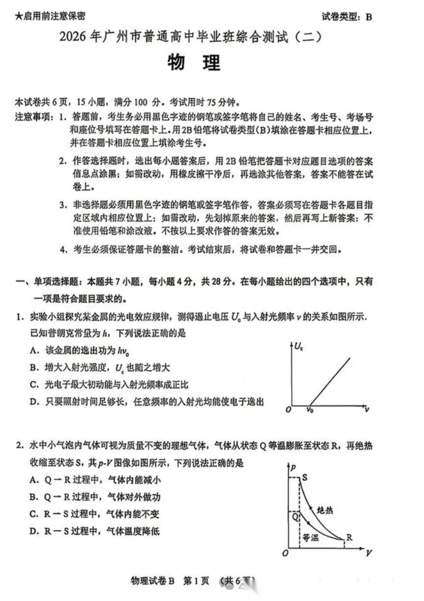 【广东卷】广东省广州市2026年广州市普通高中毕业班综合测试(二)(广州二模)(4.20-4.22) 全科试题卷(含日语)+答案