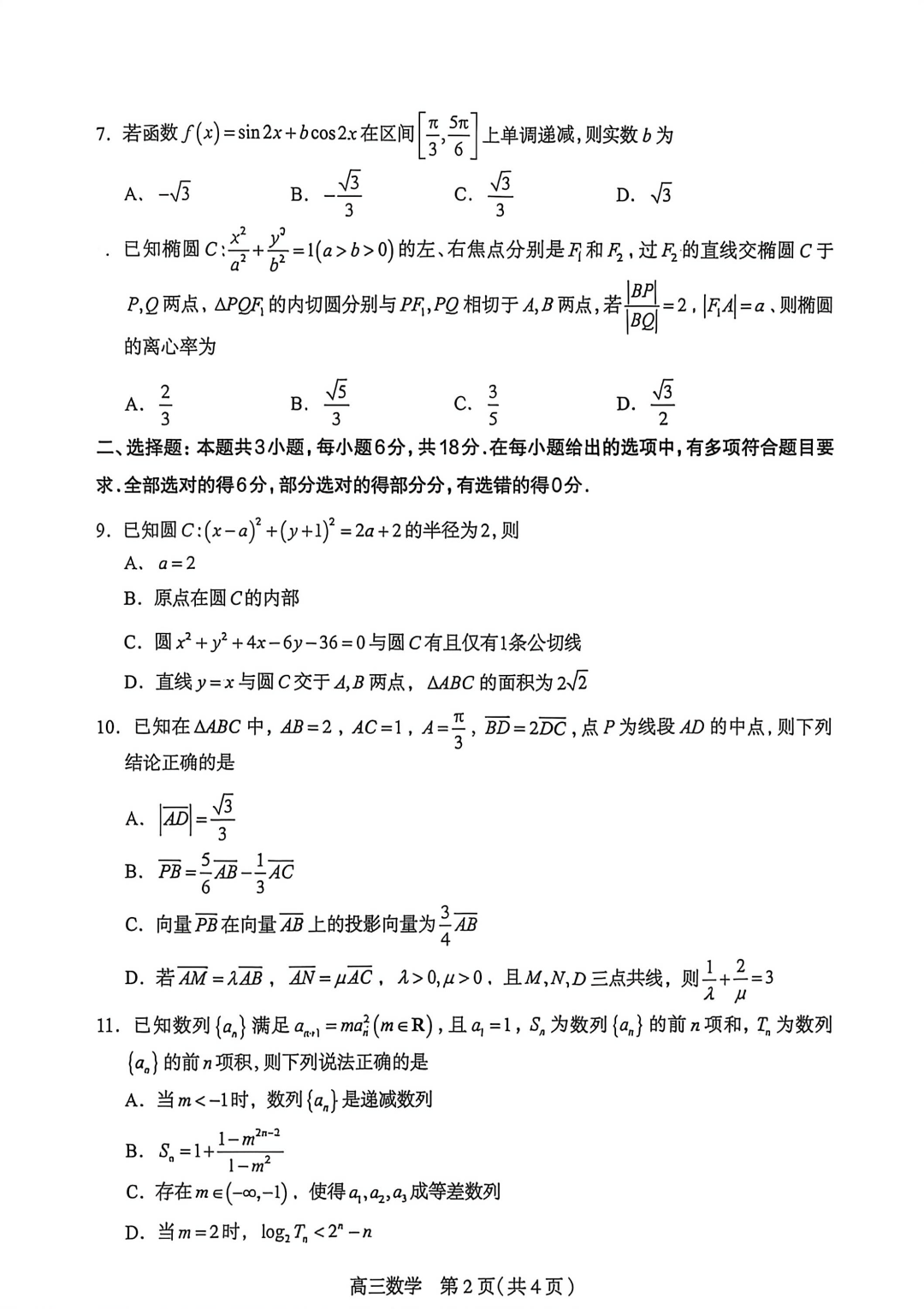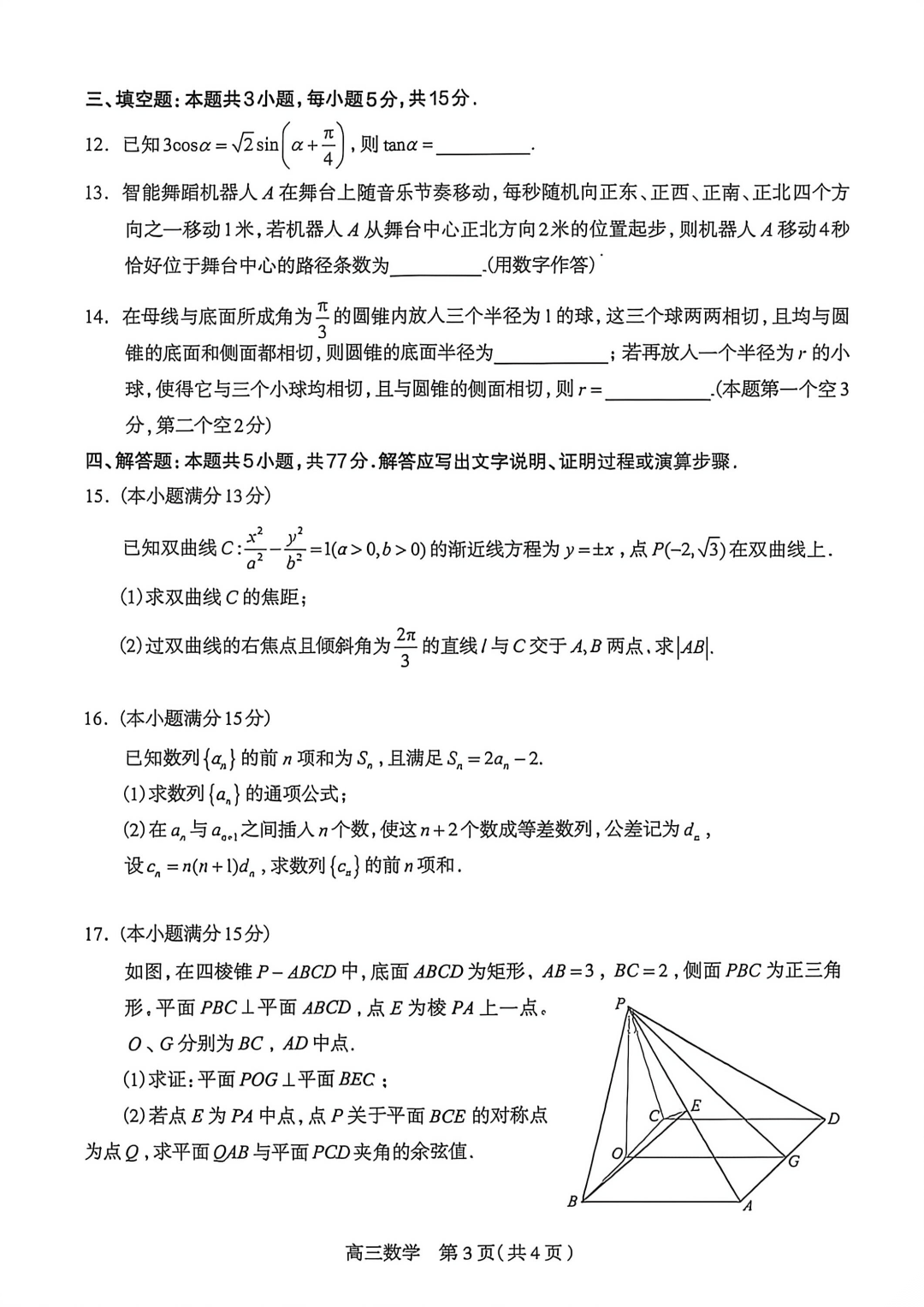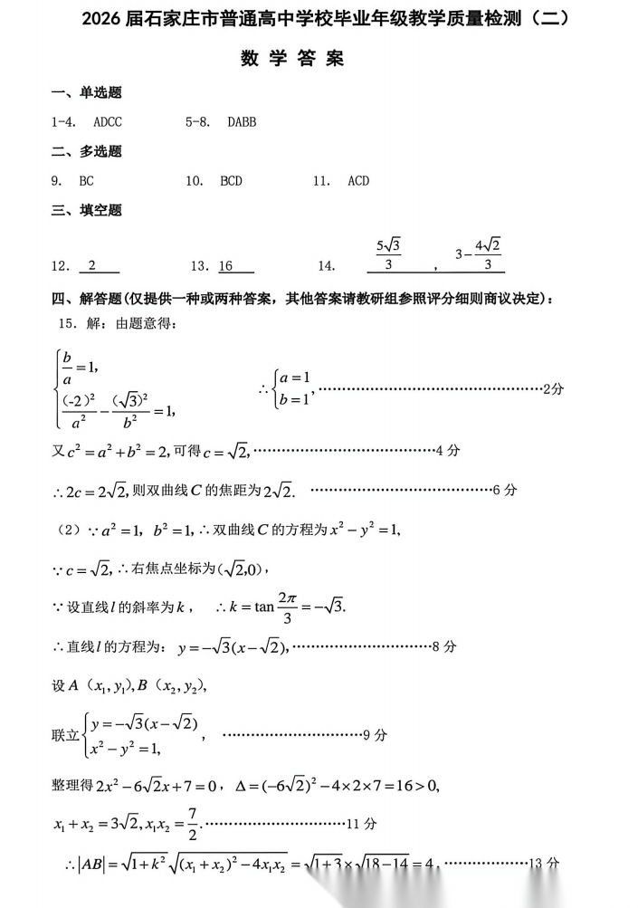 【河北卷】河北省石家庄市2026届普通高中毕业年级高三年级教学质量检测(二)(石家庄高三二模)(4.22-4.24) 数学语文试题卷+答案