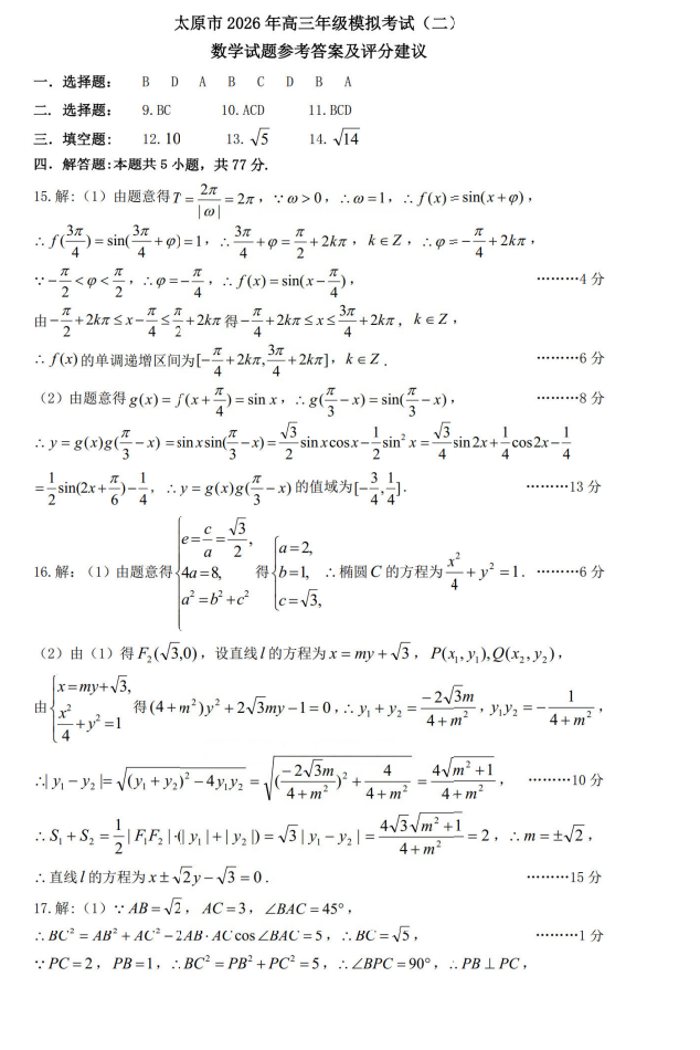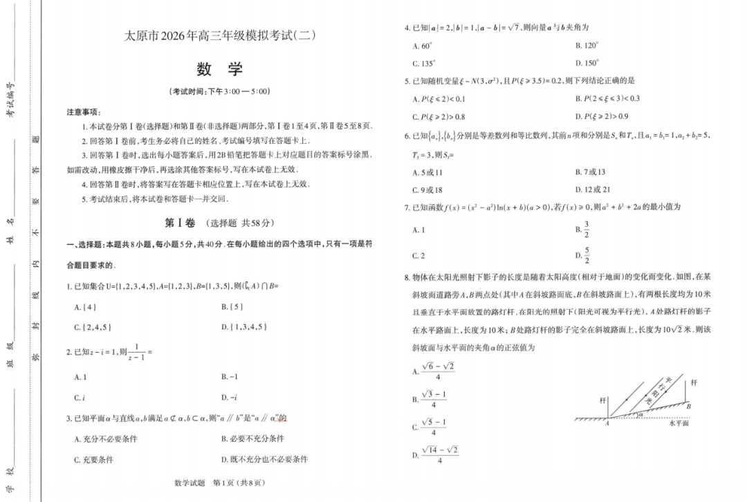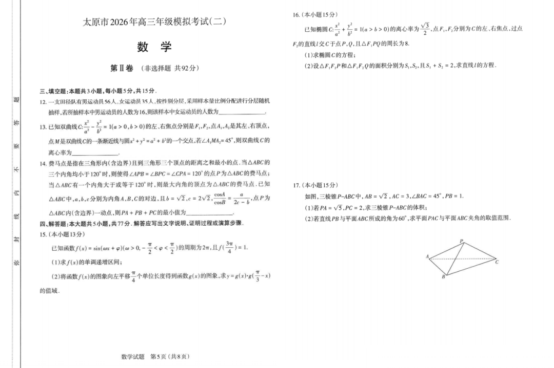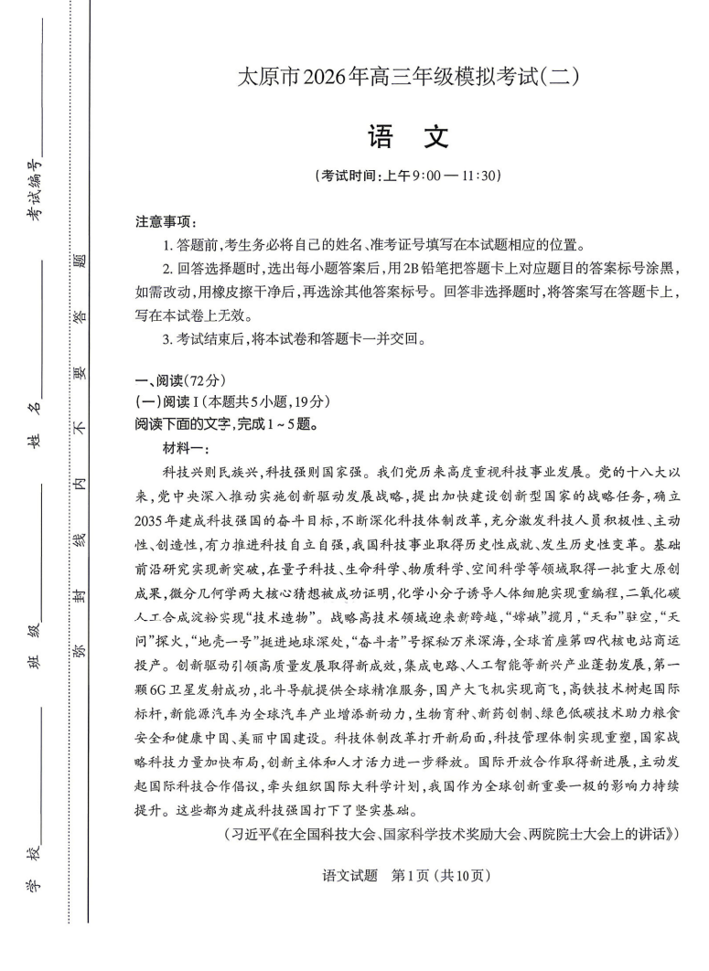 【西北卷】【山西卷】山西省太原市2026年高三年级模拟考试(二)(太原高三二模)(4.22-4.24) 数学语文试题卷+答案