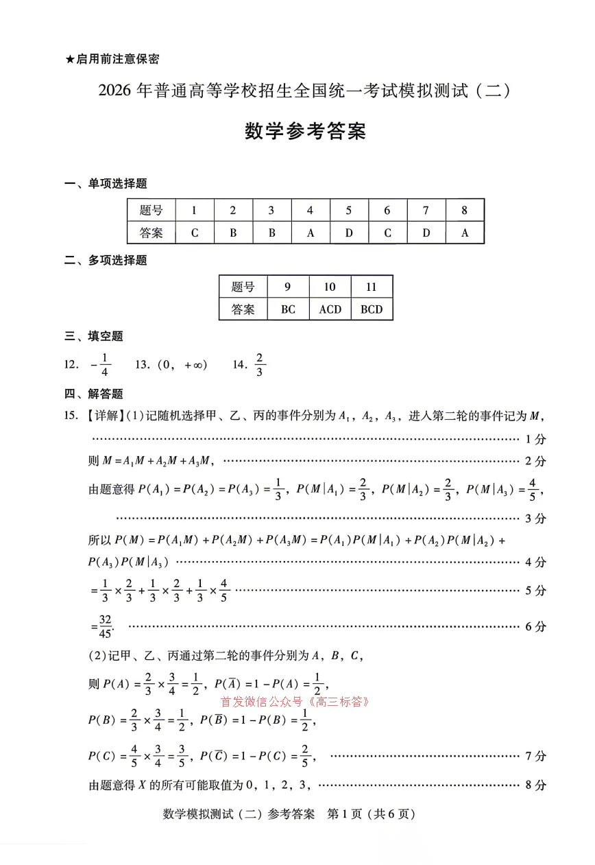 【合肥二模】2026年合肥市高三第二次教学质量检测语文、数学、英语、物理、历史答案 【合肥二模】2026年合肥市高三第二次教学质量检测语文、数学、英语、物理、历史答案