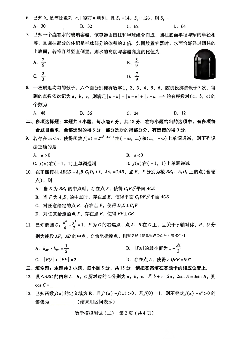 【广东二模】2026年普通高等学校招生全国统一考试模拟测试二全科下载