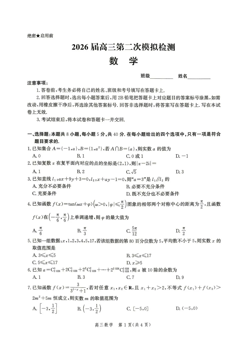 【绵阳三诊】2026年高考适应性考试全科下载 【绵阳三诊】2026年高考适应性考试全科下载