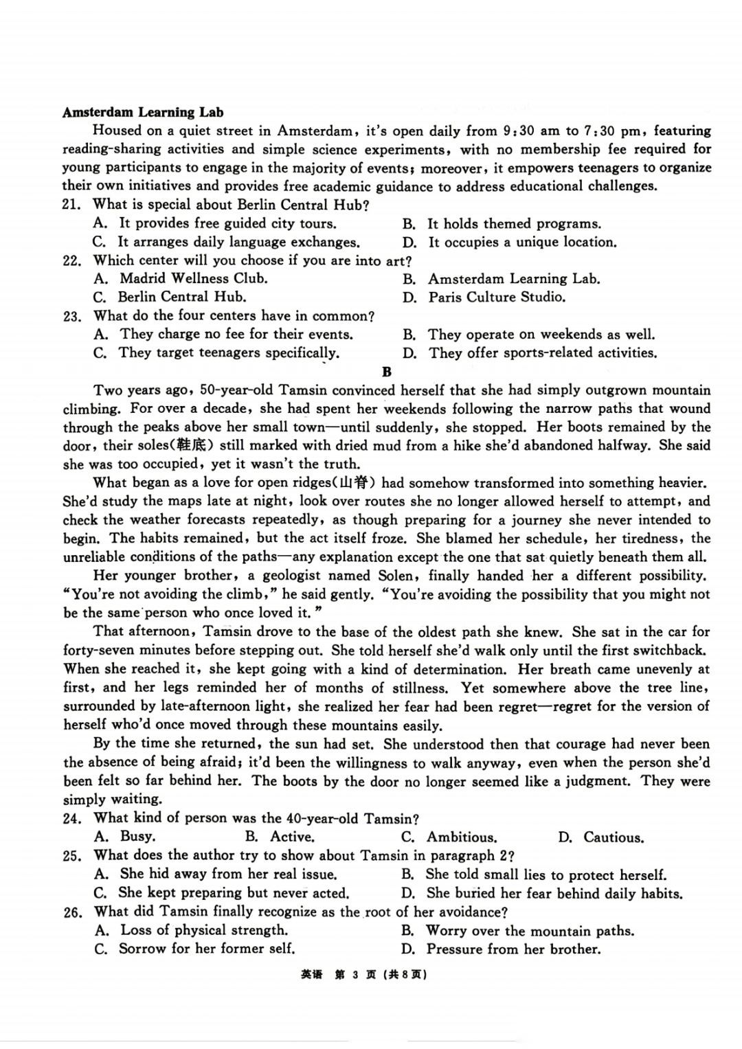 陕西省2026年高考适应性检测三答案 陕西省2026年高考适应性检测三答案