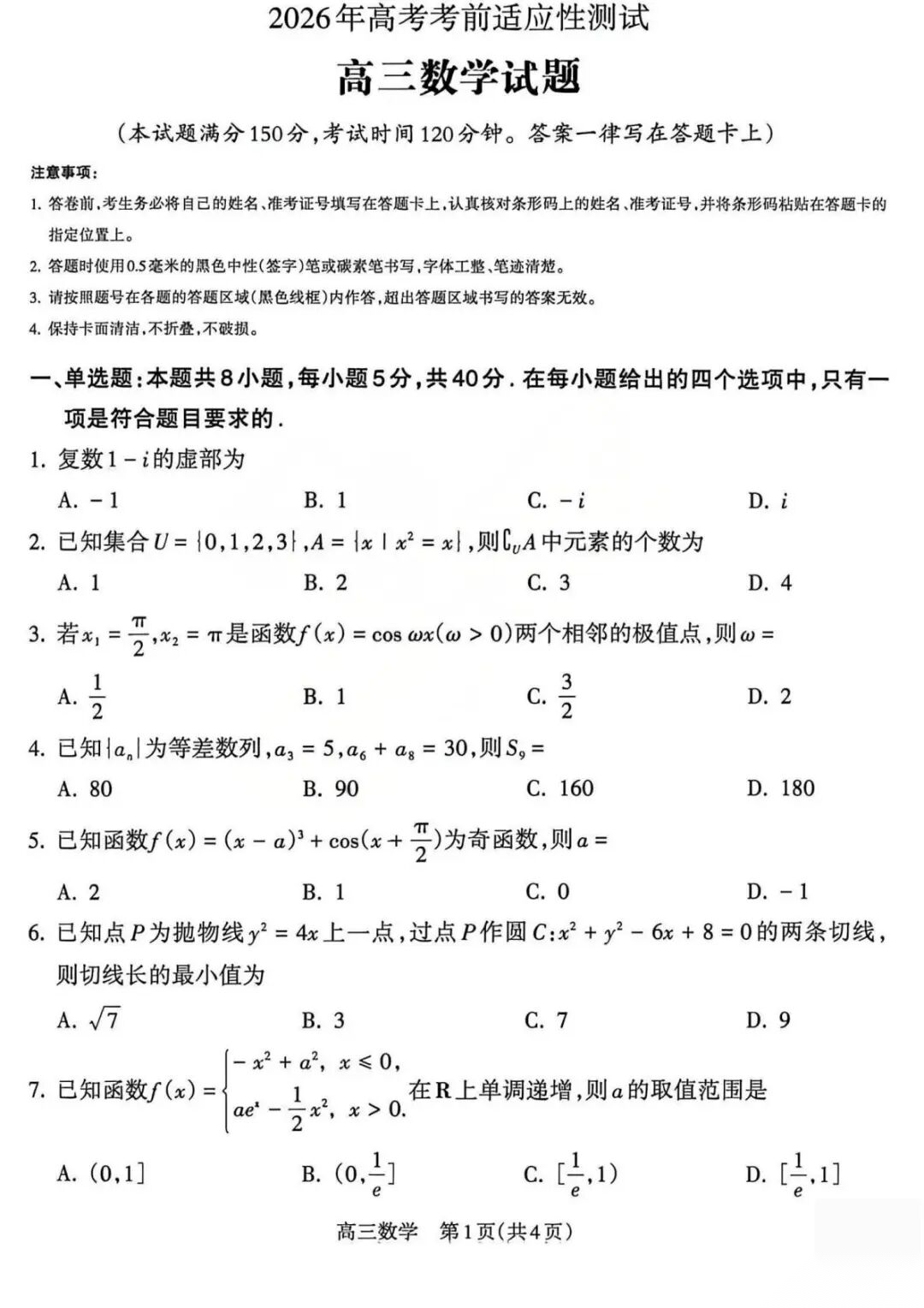 【绵阳三诊全科】四川省绵阳市2026年高考适应性考试 【绵阳三诊全科】四川省绵阳市2026年高考适应性考试