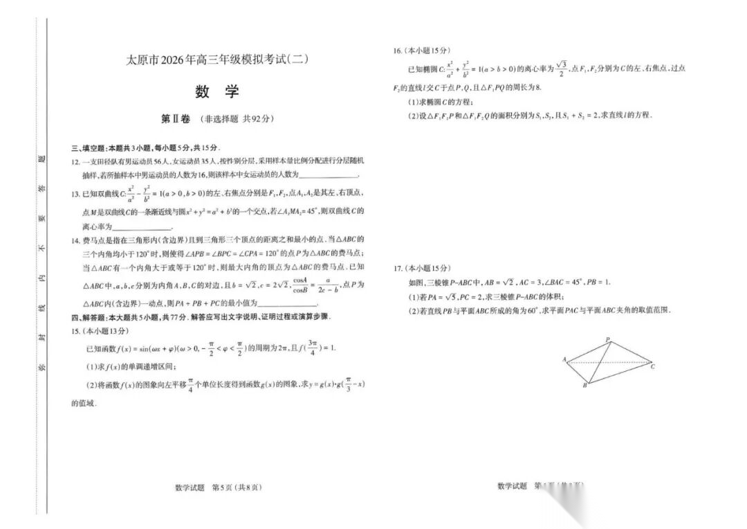 2026年山西太原大同高三二模模拟考试(二)【太原二模】【大同二模】