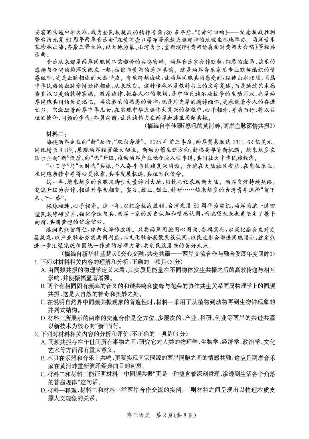2026年山东济宁高三二模高考模拟考试【济宁二模)】 2026年山东济宁高三二模高考模拟考试【济宁二模)】
