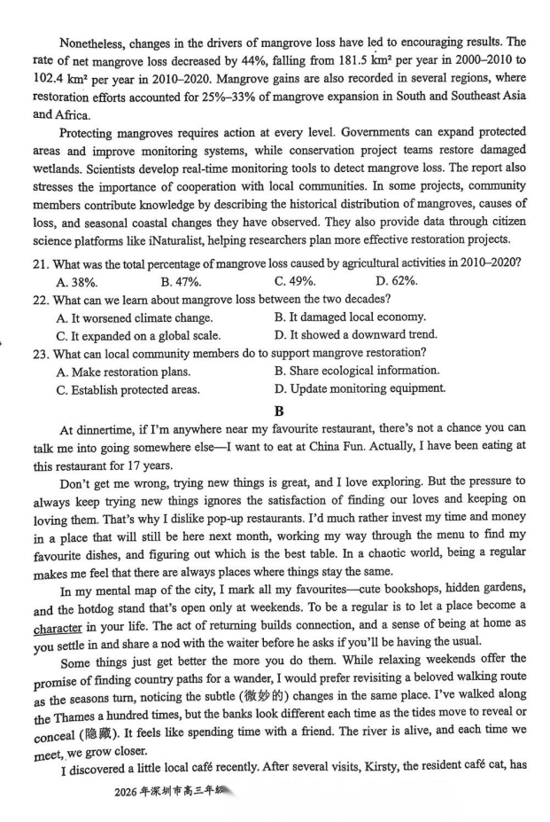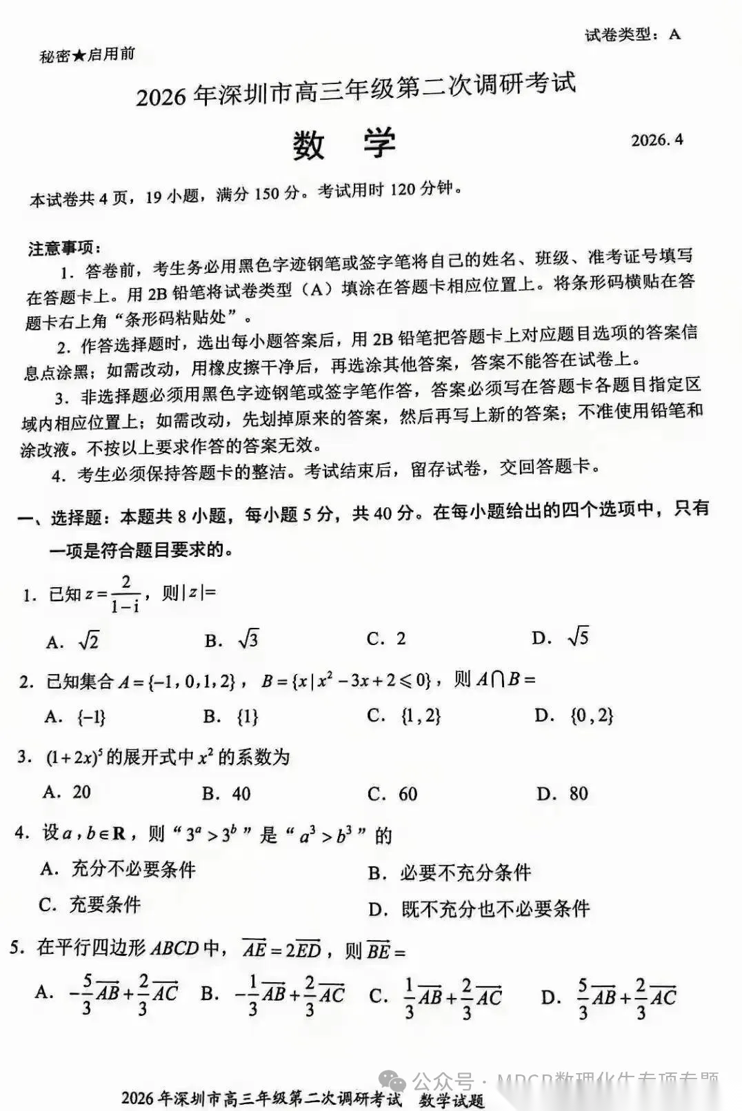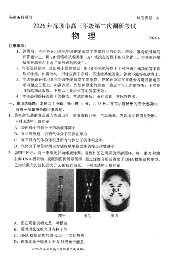 2026年深圳高三二模第二次调研考试【深圳二模】 2026年深圳高三二模第二次调研考试【深圳二模】