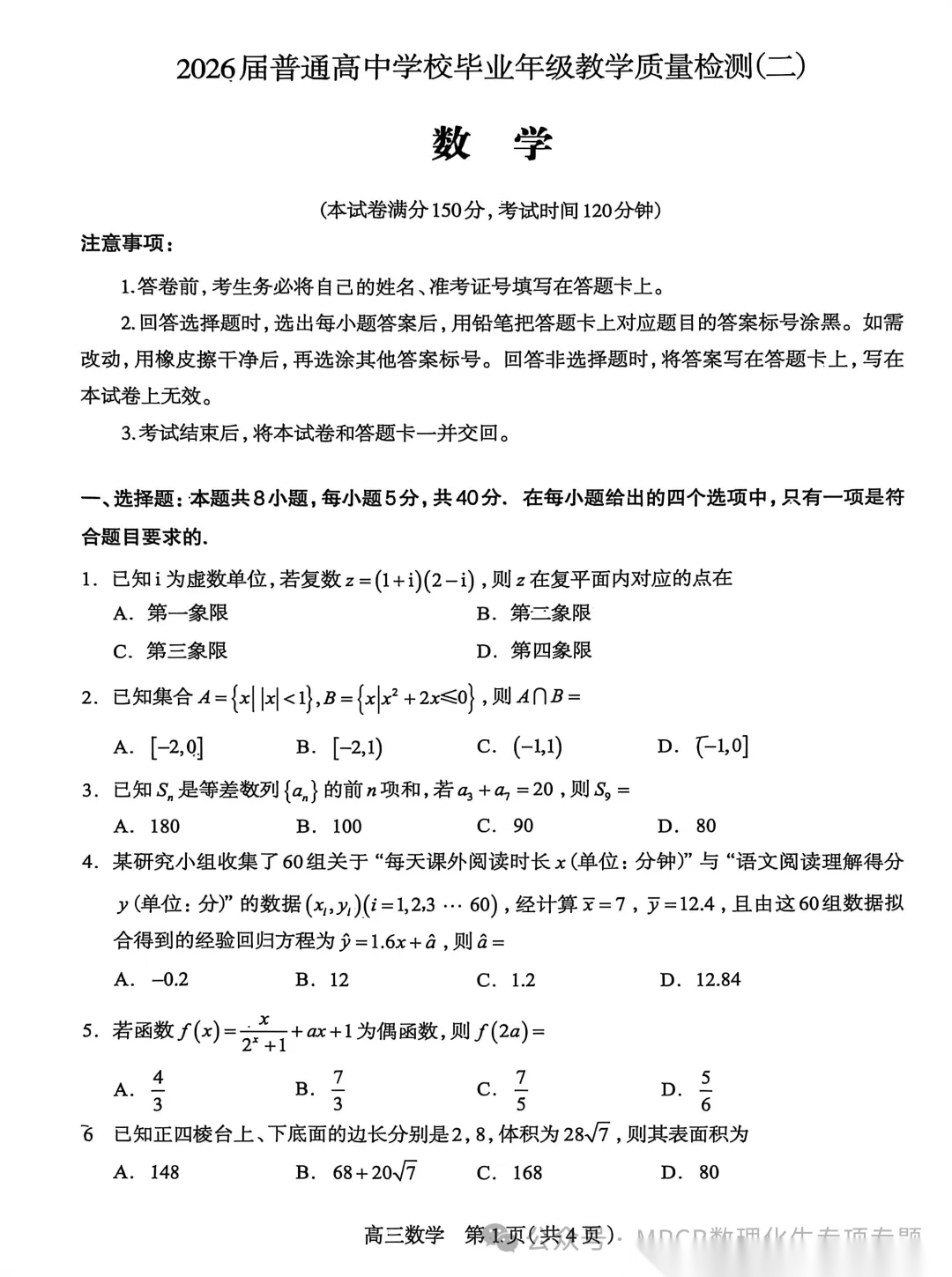 【广东卷】广东省2026年普通高等学校招生全国统一考试高三年级模拟测试(二)(广东二模)(4.21-4.23) 全科试题卷+答案 【广东卷】广东省2026年普通高等学校招生全国统一考试高三年级模拟测试(二)(广东二模)(4.21-4.23) 全科试题...