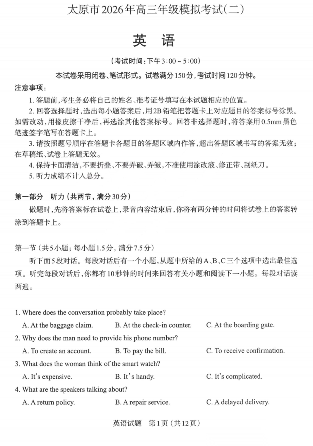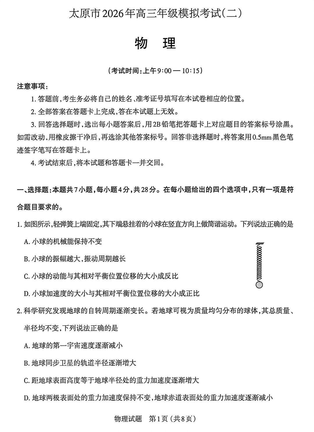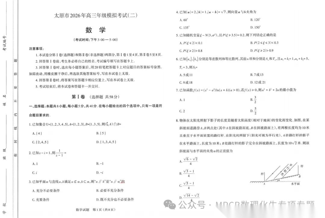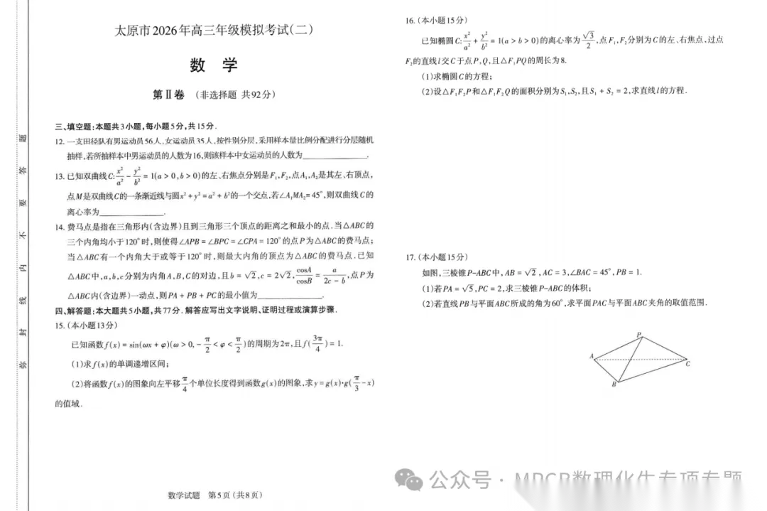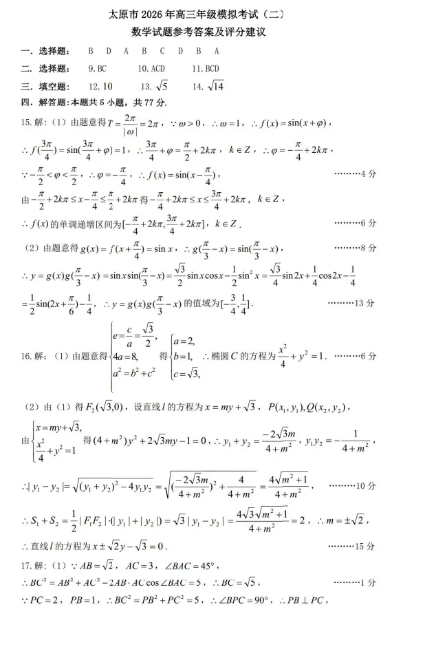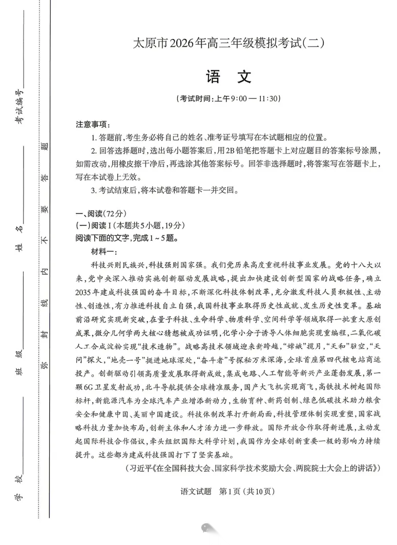 【西北卷】【山西卷】山西省太原市2026年高三年级模拟考试(二)(太原高三二模)(4.22-4.24) 数学物理英语语文历史日语试题卷+答案