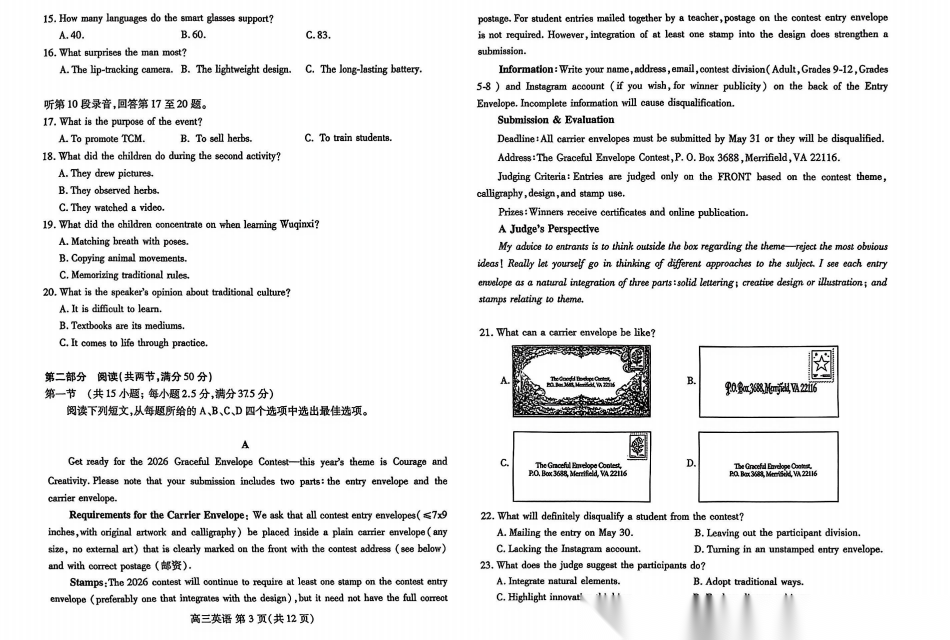 【安徽卷】安徽省合肥市2026年合肥市高三第二次教学质量检测(合肥市高三二模)(4.22-4.24) 数学物理英语语文历史试题卷+答案 【安徽卷】安徽省合肥市2026年合肥市高三第二次教学质量检测(合肥市高三二模)(4.22-4.24) 数学物理英语语文...