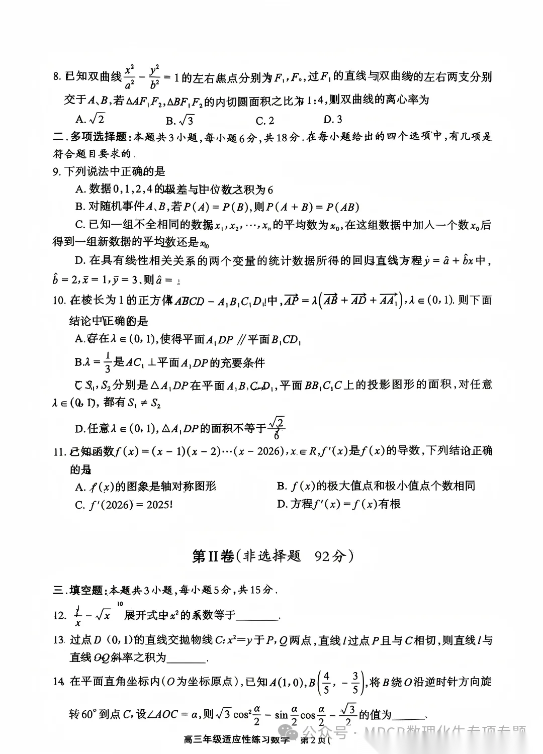 【补齐重发】【四川卷】四川省绵阳市2026年高三年级高考适应性考试(绵阳三诊)(4.20-4.22) 全科试题卷+答案 【补齐重发】【四川卷】四川省绵阳市2026年高三年级高考适应性考试(绵阳三诊)(4.20-4.22) 全科试题卷+答...
