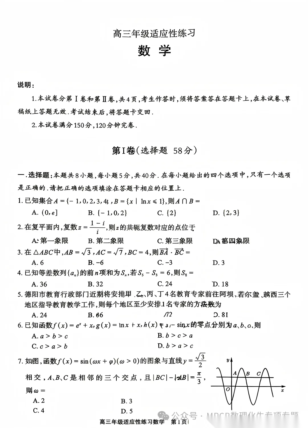 【四川卷】四川省德阳市2026届高三年级适应性练习(德阳三诊)(4.20-4.22) 全科试题卷+答案